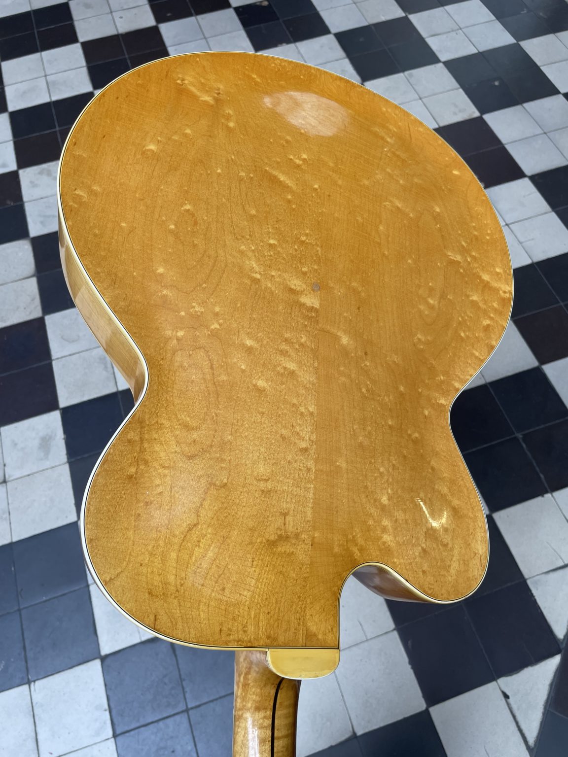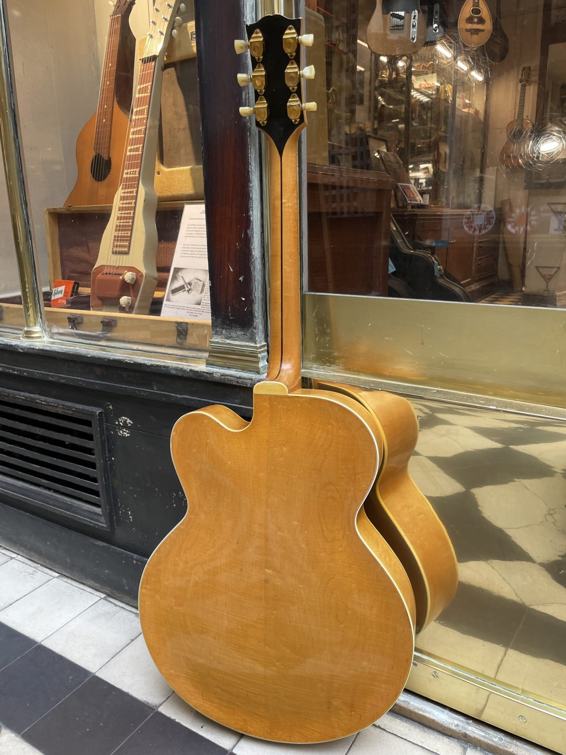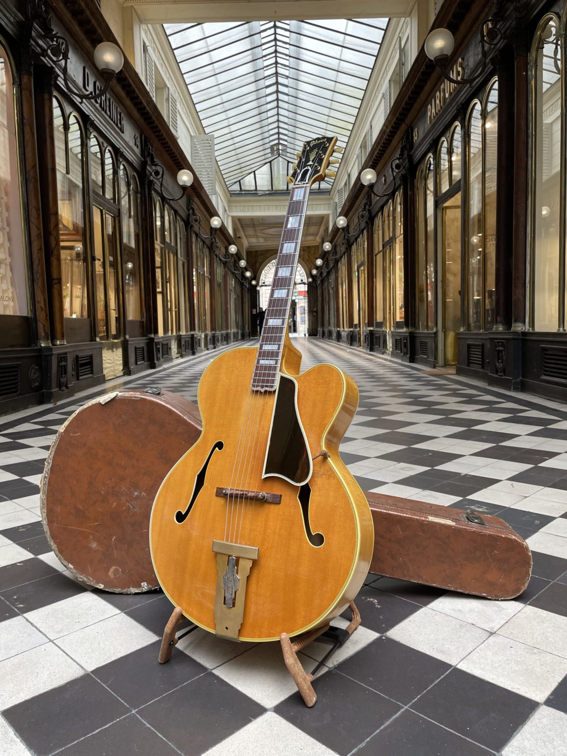A very rare model in its Natural finish and cutaway variant, since it is one of only 23 identical guitars produced that same year. This queen of swing arrives at the crossroads of two eras, that of the post-war period when large acoustic archtop guitars still dominated the rhythm sections of jazz ensembles, and only a year before the introduction of its electric counterpart, the Gibson L-5CES equipped with the innovative P-90 pickup, which would redefine the very notion of what a jazz guitar is.