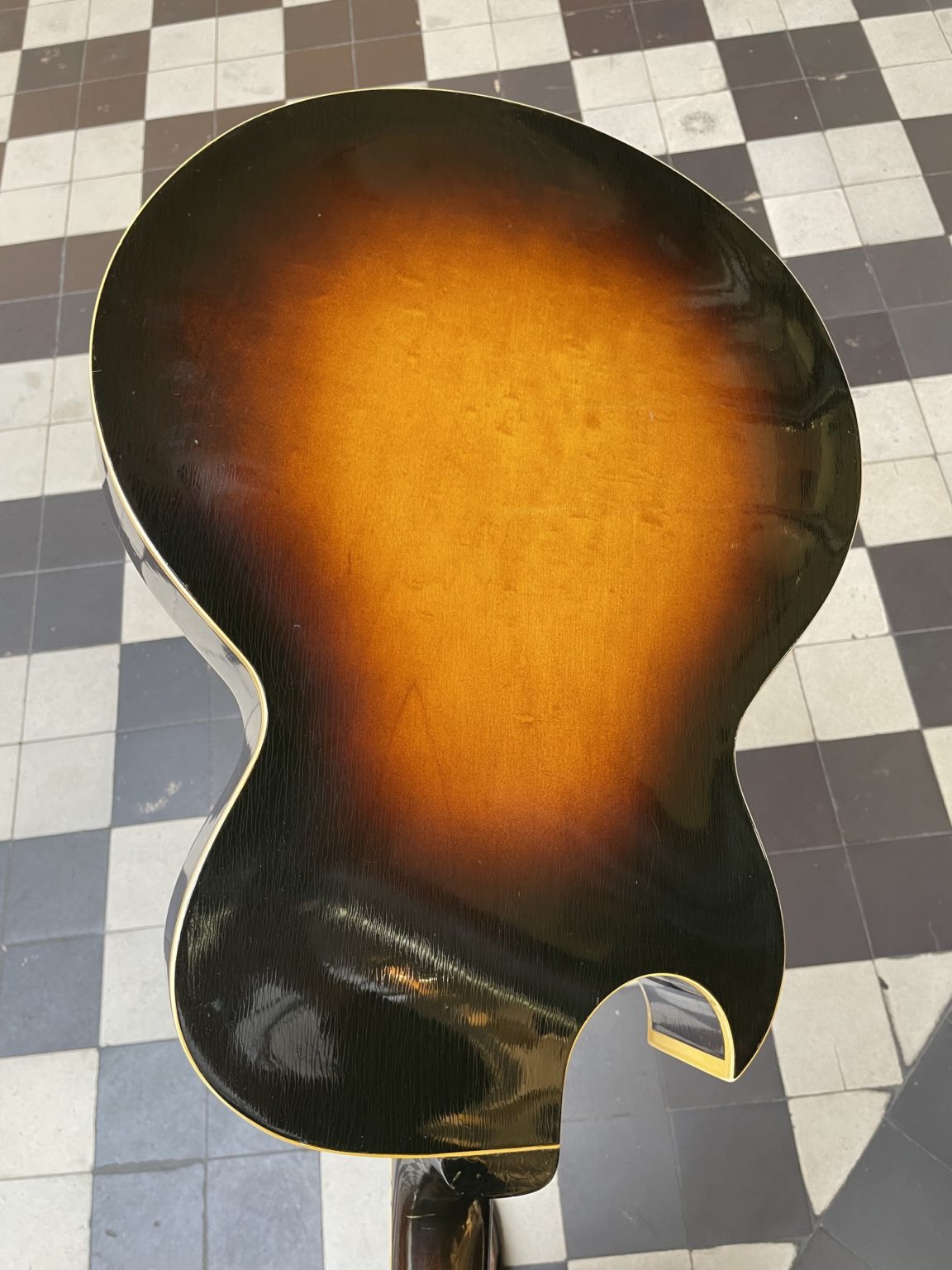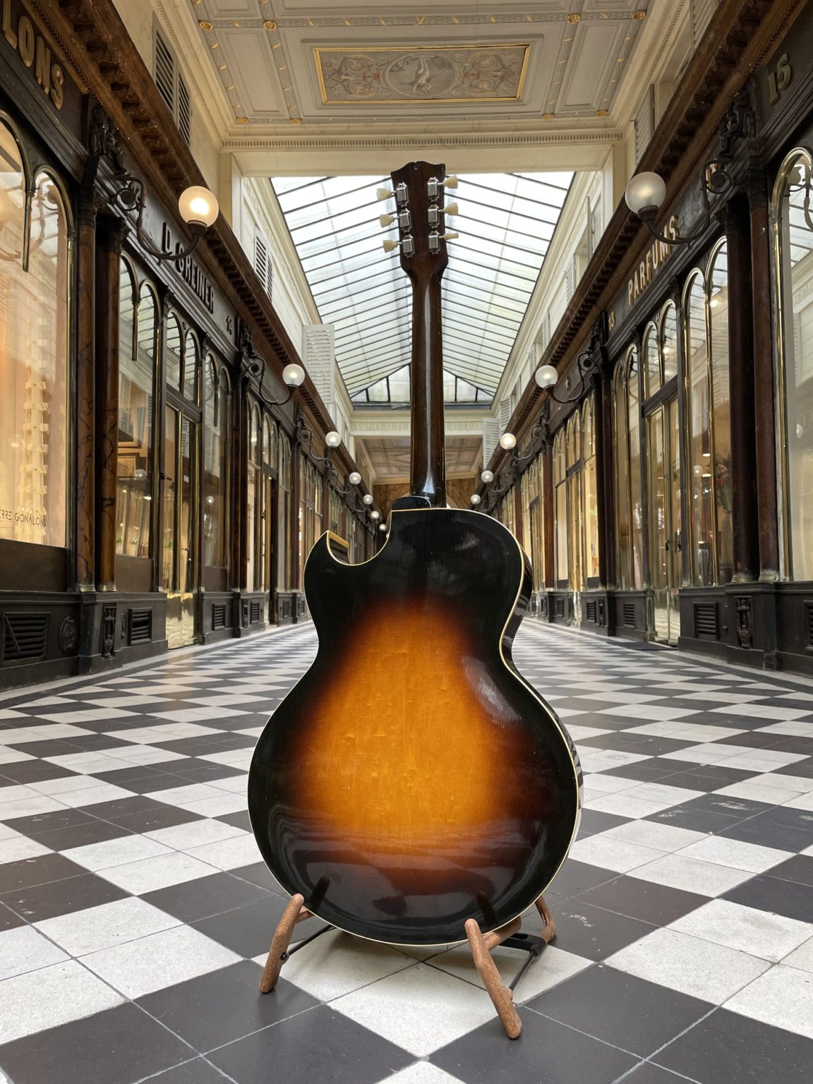 This ES-175 configuration has been seen time and time again in the hands of biggest names in jazz guitar; for example, in the 1950s and 1960s, jazzman Herb Ellis often appeared photographed with a guitar practically identical to this one, before a model equipped with a humbucker gained his favor. The example presented here is in a remarkable state of conservation, clearly cherished and maintained during its seven decades of existence! After a complete refretting and the adjustment of all its tuning elements in our workshop, the guitar is once more all set to give off its voice imbued with the atmosphere of recordings from the 50s.