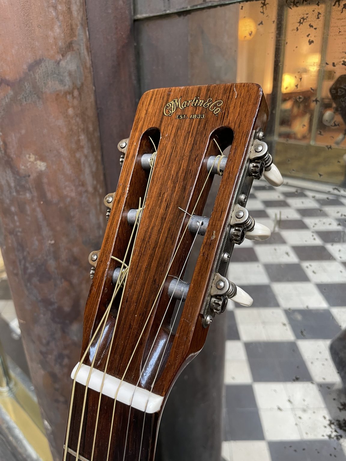 Style 21 is all in all very close to Style 28, only somewhat more streamlined in the terms of trim – ivoroid and tortoloid top binding, the tortoloid back and fingerboard binding, as well as a nice geometric pattern on bottom joint. Compared to their mahogany counterparts, the 00-21 models were produced in very small quantities – for example, only 24 examples were ever made for the year of production of this guitar! Despite its reduced size, it gives a rich and deep voice, with the singing highs that are the characteristic of instruments made by Martin. Complete professional setup done in our workshop, in perfect playing condition.