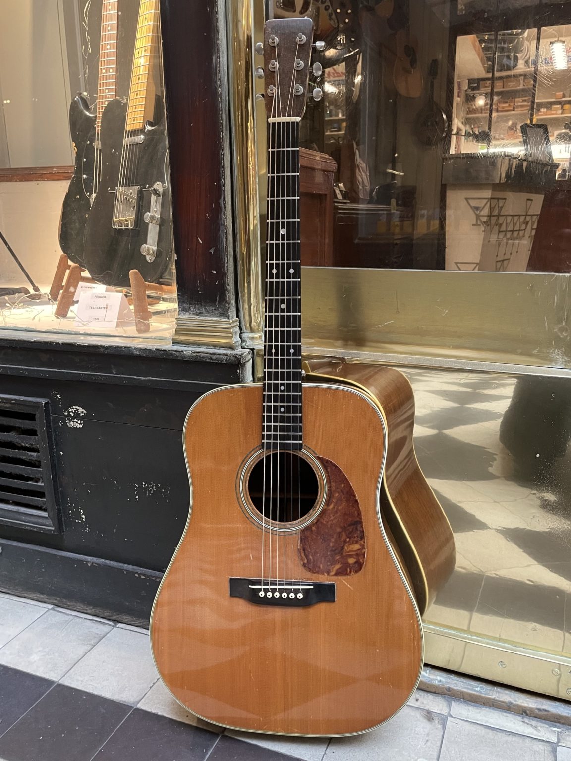 At the end of World War II, this was the largest and most expensive guitar that Martin offered in its catalogue. With the rare D-45 models featuring elaborate mother-of-pearl trim elements having been discontinued during the war and never relaunched afterwards, the flat-top offering was effectively dominated by this relatively austere rosewood Dreadnought. Despite strong competition from Gibson’s Jumbos in the late 1940s and 1950s, the D-28 represented for most professional musicians the alpha and omega for a flat-top guitar that met all their needs: excellent playability, unmatched sonic power, perfect balance for all playing styles – solo or accompaniment. We can then understand the unequivocal success of the model and its presence in the hands of the greatest – Hank Williams, Clarence White, Tony Rice, Bob Dylan or Neil Young (on Hank Williams’ old D-28!), to name a few of the most eminent.
