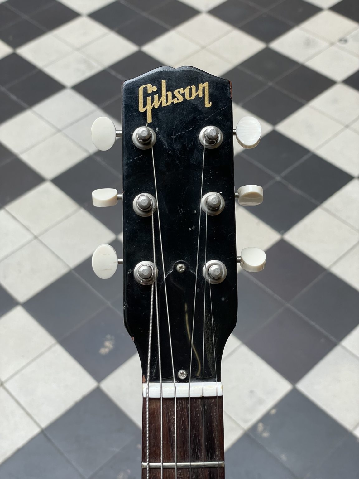 The construction characteristics are relatively close to those of the Junior, with a solid mahogany body, a set neck and a rosewood fingerboard, making for an extremely light and compact guitar. However Gibson condensed the manufacturing process even further by doing without the added winglets glued on either side of the headstock, and mounting the assembly including the pickup and electronics directly on the pickguard which covers a single cavity on the front of the body. The pickup, somewhat incongruous in the well-established landscape of P-90s and humbuckers, is a borrowing from the Skylark lapsteel introduced shortly before. PU-380, its nickname, is a single-coil pickup whose appearance is reminiscent of those used by Gibson’s Californian competitor on their own student models! In any case, the model was a great success and sold in its first 6 years of existence almost 40,000 copies of all variants combined, a truly colossal number when considered in the industrial context of the time.