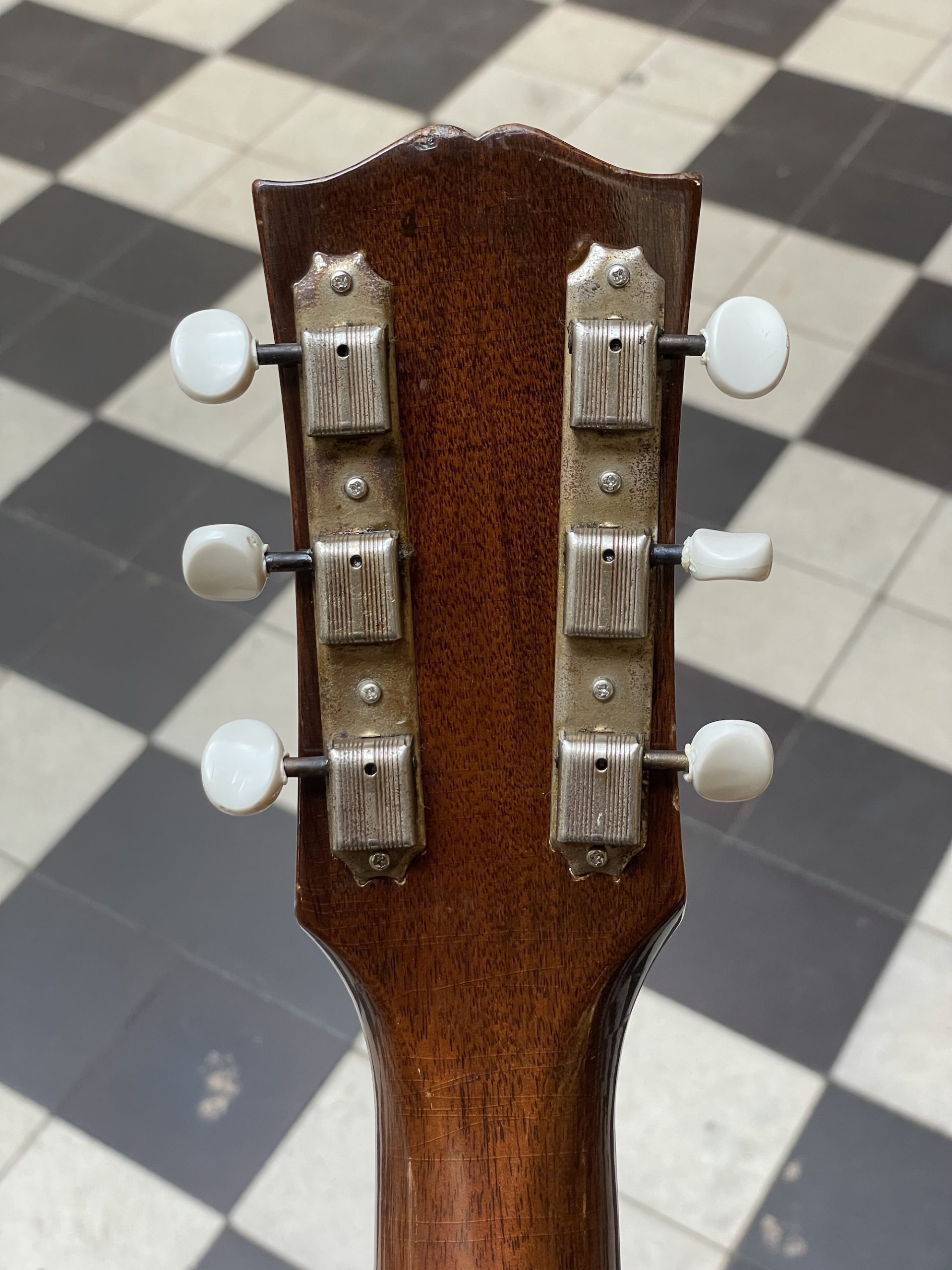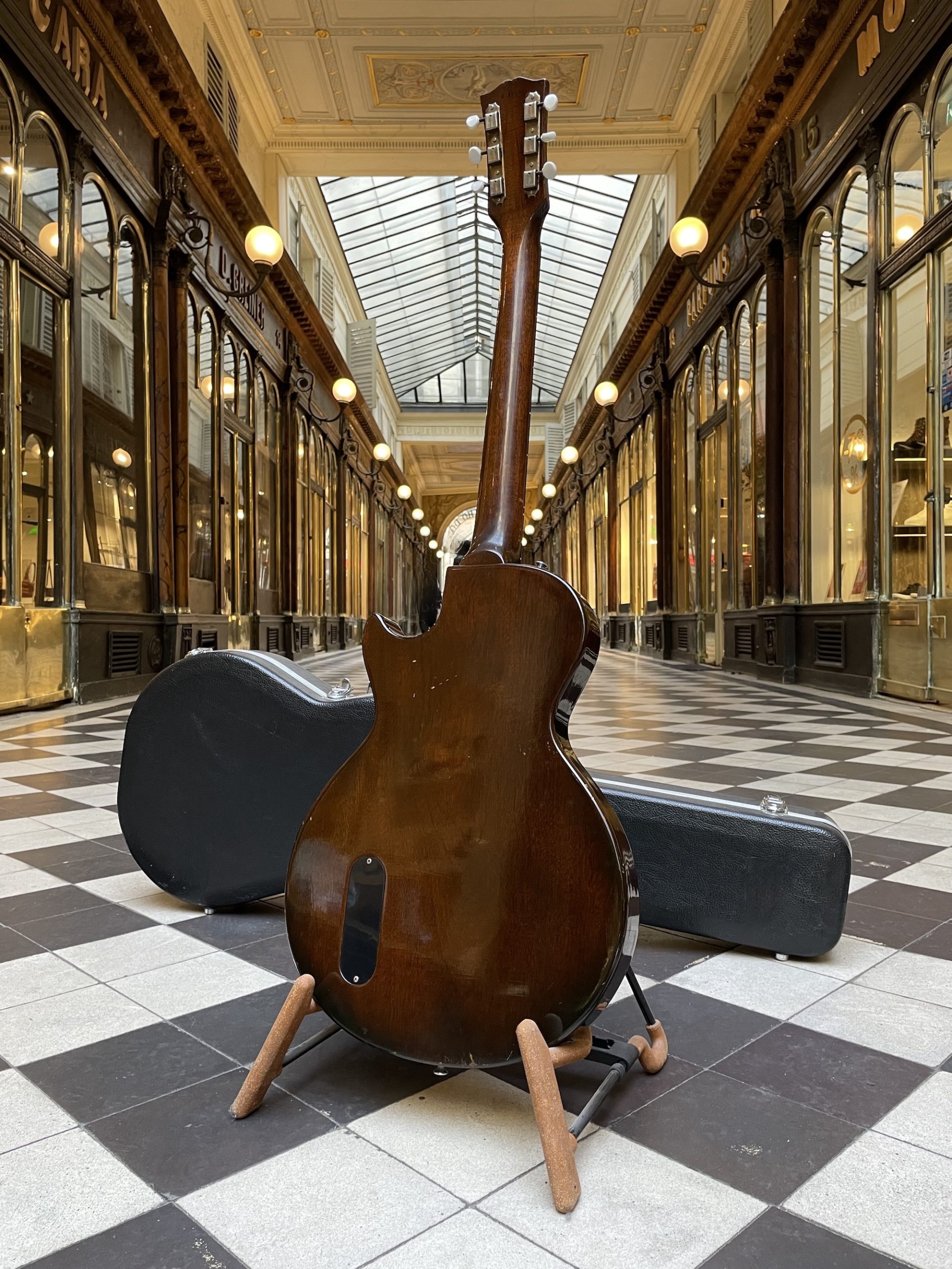 The 1954 Gibson catalog also boasts a “Spanish Electric solidbody guitar with a refined sound, action and easy handling, for an unbeatable price” – for the laughable sum of $99.50 (an extra 49.50$ could allow one to complete the set with a Les Paul Junior amplifier, the whole therefore coming to the same price as a Fender Esquire, the entry-level model of the Californian manufacturer), many parents must have pushed their offspring to pick up a Gibson, and many instruments must also have found themselves stored under a bed or in a closet once the kid’s initial enthusiasm had passed. We can assume that this is what happened to the guitar presented here, since it comes to us in almost immaculate condition, except for a few marks and a slight cracking on the varnish. All the elements constituting this Junior are original: its Sunburst finish which has hardly faded, its P-90 pickup, its wiring and electronics whose solder joints have never been touched, its combined bridge/tailpiece stop-bar, its no-line Kluson tuners with oval plastic buttons, everything is as it was 69 years ago! The guitar has been fully setup and prepared by us, adjusted with a perfectly comfortable action.