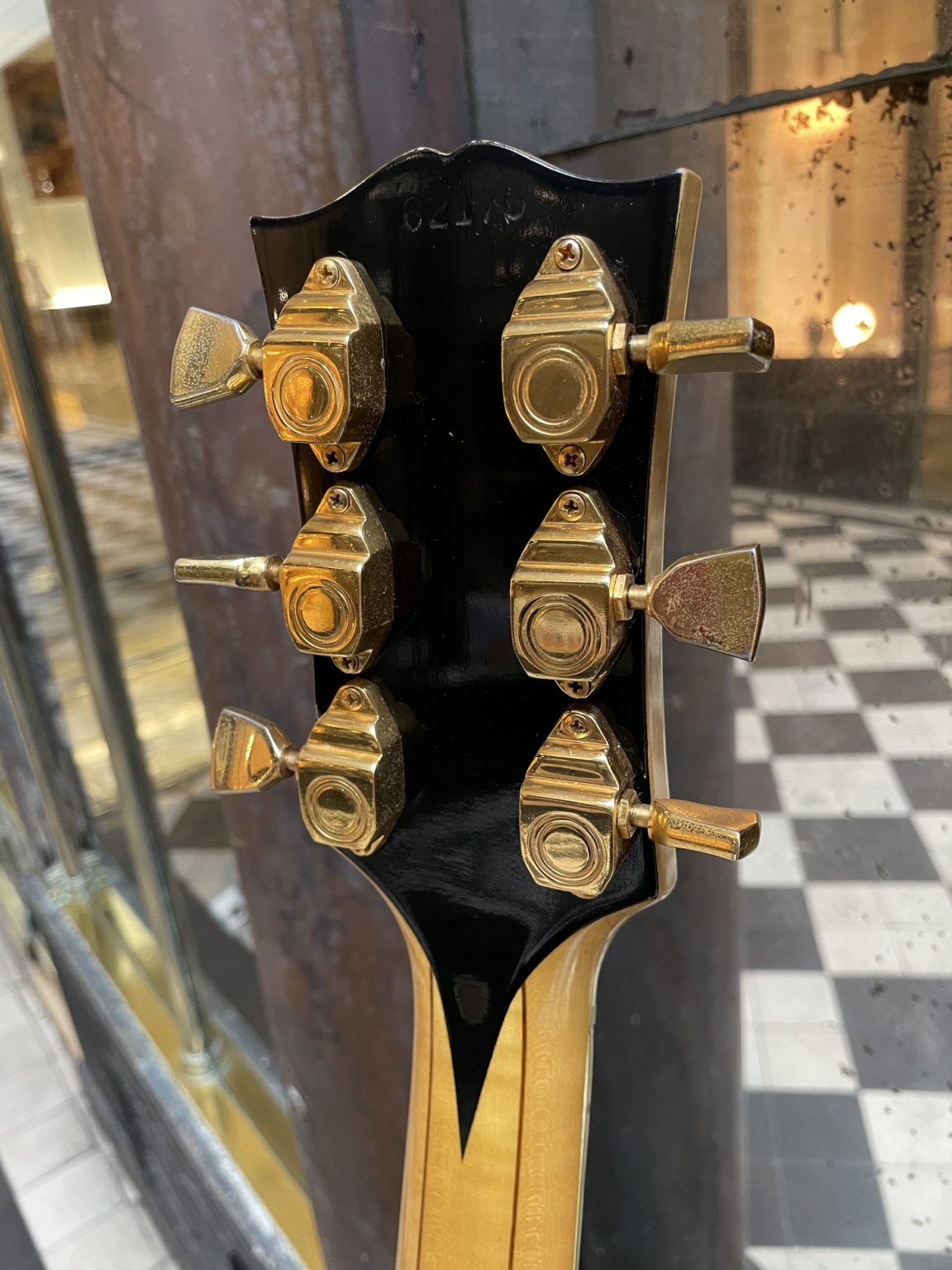 In any case, we are in the presence of an absolutely high-end guitar built with woods of exceptional choice – carved top made from wide-grained spruce, back, sides and neck made of stunning maple, ebony fingerboard and Brazilian Rosewood adjustable bridge. We find on the headstock the script-style logo as well as the inlaid flowerpot motif, and the rest of the original hardware consisting of the luxurious art-deco tailpiece typical of the L-5, and gold Kluson Sealfast tuners. The neck profile of this guitar is a “D”, relatively flat compared to the L-5 of the previous generation but ultimately quite typical of other Gibsons encountered in the early 60s and in line with the new playing habits developed since the introduction of electric models. The neck construction is otherwise of the new type recently introduced, 5 parts consisting of 3 pieces of maple spaced with two rosewood lines, instead of the older 3 piece style. By 1963, a player wanting a premium acoustic archtop guitar was left with one of two options: Gibson or John D’Angelico in New York. This L-5CN is thus an eloquent demonstration of the know-how that Gibson workers still knew how to put into the construction of their acoustic instruments, even at a time when electric had taken over in the interest of musicians and in the resources committed to research and development of instruments. Without a shadow of a doubt, this guitar has unparalleled superbness, a pleasure to play, to hear played, and to contemplate.