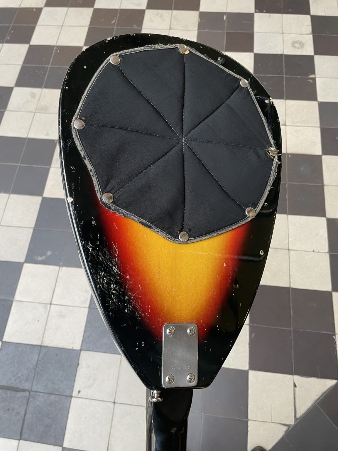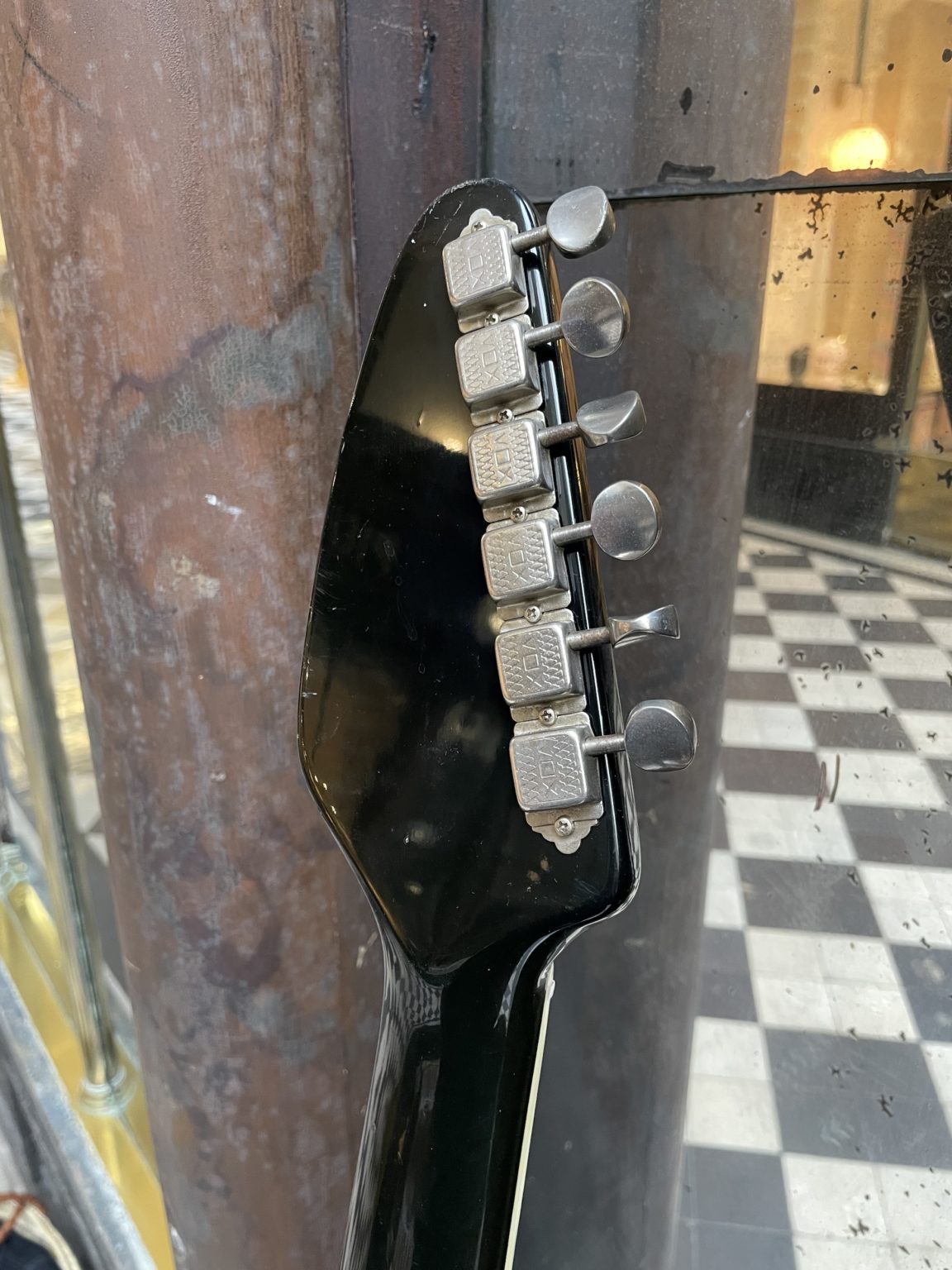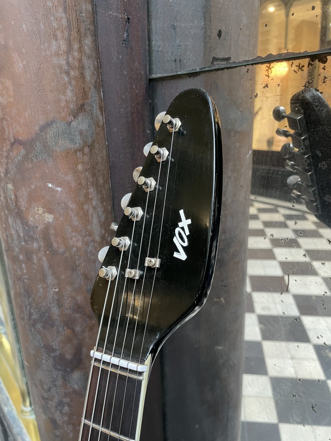 Very quickly, the production abilities of the JMI factory (Jennings Musical Instruments, owner of the Vox brand) located in Dartford, Kent became overstretched by demand, as they were already under high pressure for producing the Vox line of amplifiers. The decision was then made to entrust the manufacturing of guitars to the Eko company based in Recanati in the Marche region of Italy, the beating heart of European instrumental manufacturing in the 60s, 70s and 80s: in addition to electric and acoustic guitars produced by Eko, the surrounding villages would spawn a host of accordions, electric organs, synthesizers, drum machines, amplifiers and effects each rivaling in innovation and inventiveness, produced by sympathetically old-fashioned names such as Farfisa, Elka, Crumar… It was in this creative environment that the Vox Mark series was developed, the Mark VI being quickly complemented by the nine-string Mark IX and the twelve-string Mark XII. All these models have in common a configuration with 3 single-coil pickups, a master volume control, two tone controls and a three-position pickup selector – the connection is quickly made with a certain American guitar model…