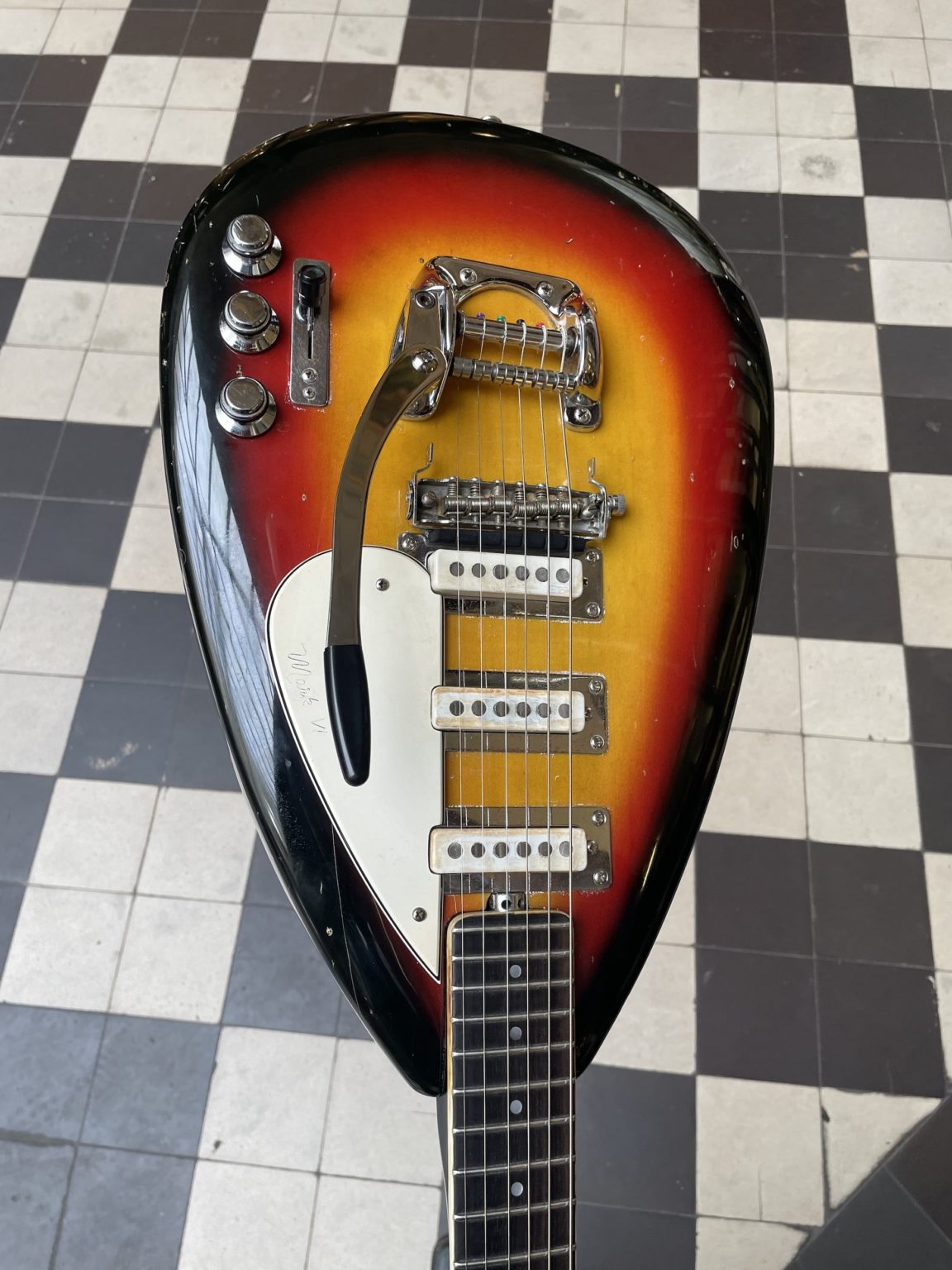 Its founder, a certain Brian Jones, would frequently appear at the time with a tear-shaped guitar in his hands, with a very modernistic appearance among its German and American counterparts which were commonplace in the period. Bearing a name reminiscent of the rigorous nomenclature of British military aircraft, the Vox Mark VI appeared in 1964, in direct lineage to the Mark III version of the Phantom model, the British manufacturer’s original solidbody guitar, and immediately met with resounding success since it found a particularly prominent champion in the person of the Rolling Stones’ guitarist.