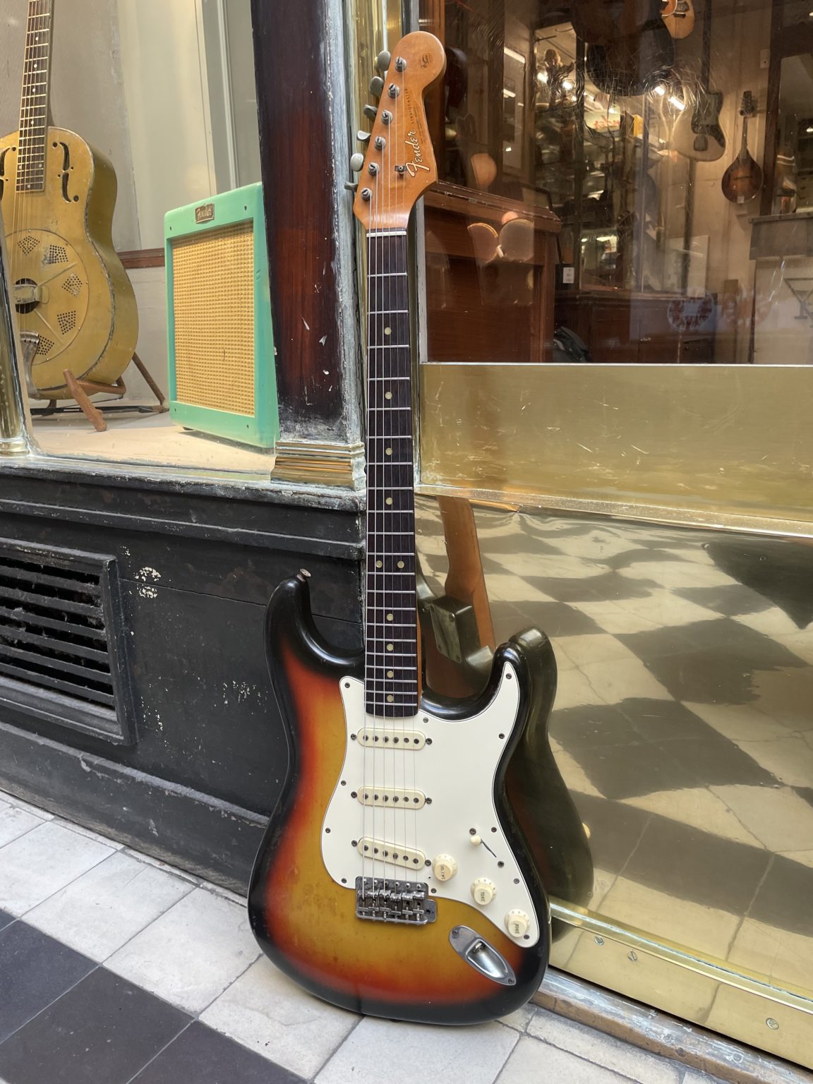 Fully appraised and professionally set up in our workshop, the instrument has been perfectly optimized for comfortable playing. The guitar is sold in a modern Fender case, trem arm included.