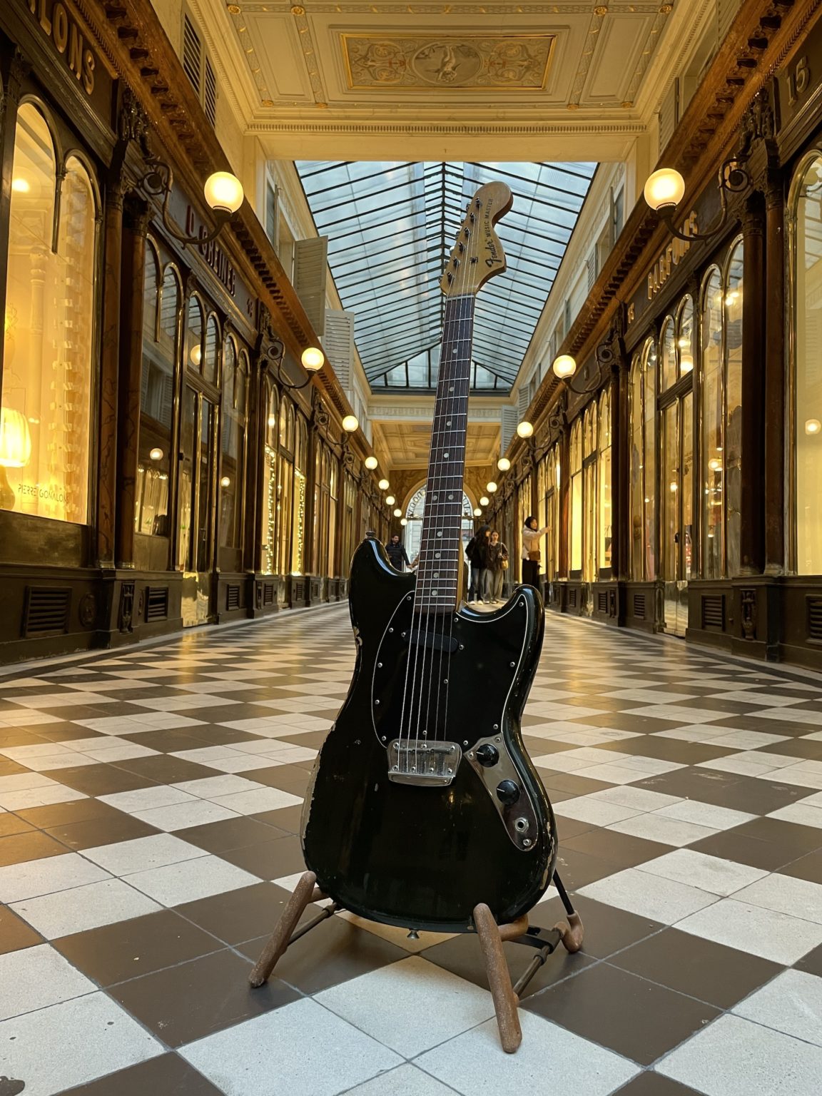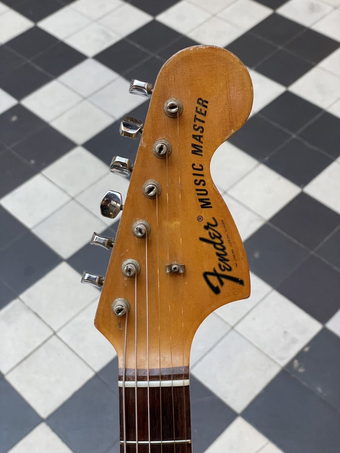 The Musicmaster is one of the classic starter instruments offered by Fender: introduced in 1956, it is the “student guitar” with the longest period of continuous production at the time of the manufacture of the example presented here, ahead of its sister model the Duo-Sonic and the Mustang. The instrument is as rudimentary as possible, with one single-coil pickup in the neck position combined with volume and tone controls. The Musicmaster has undergone several revisions over the decades, going from a very short 22.5-inch scale, maple neck and anodized metal pickguard in the late 1950s to the Musicmaster II in the mid-1960s, when the model would be given a more comfortable 24-inch scale, until the end of the following decade when we find this variant in a completely different aesthetic register but having retained the essence of the model as it had been established 20 years previous.