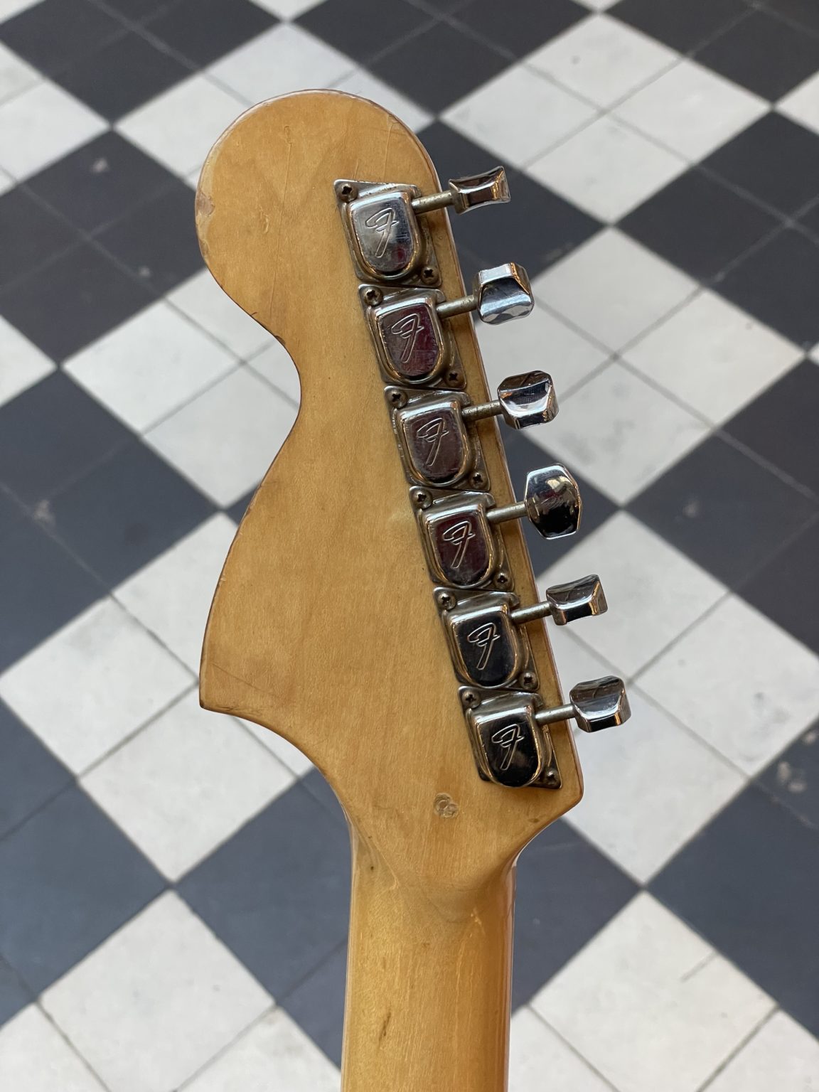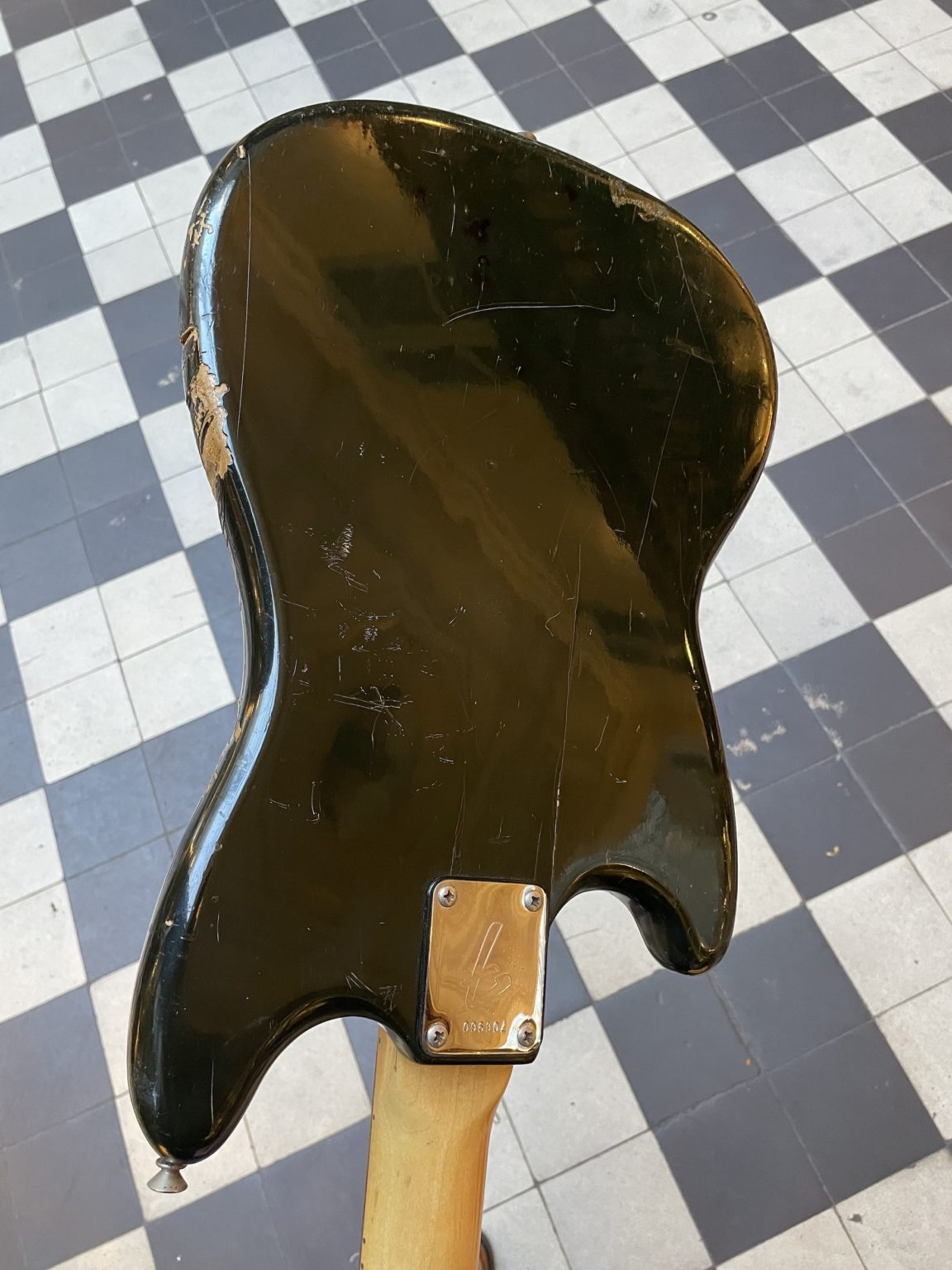 This little guitar has been somewhat roughed up but has come to us complete with all its original parts, including its varnish, Musicmaster pickup, electronics and hardware. Like all Fenders of this type, there is something particularly enjoyable about picking up an instrument without having to think too much about finding a sound – it’s simple, there is only one and it works incredibly well! We have taken care to fully set up this guitar, with a full levelling and polishing of the frets and a new bone nut made in our workshop. Ready to go!