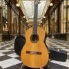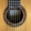The guitar’s construction is relatively innovative: the bracing features a nine-strand construction topped by two straight sounding bars and closed at the bottom by two other thin oblique bars; the scale length is shorter than standard, measuring 630 mm; the nut width is also reduced (47 mm), and the handle features a rounded, comfortable profile. As a result, this guitar is surprisingly ergonomic, and while it will certainly prove confusing to play for those familiar with José Ramirez-style instruments, it is a refreshing interpretation of the Spanish classical guitar with a superbly balanced voice across the entire tonal palette.