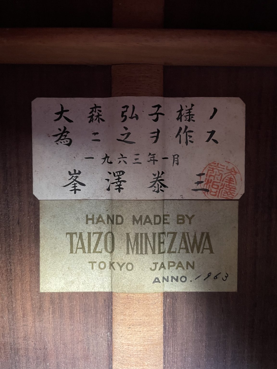 Superb Spanish guitar by Japanese luthier Taizo Minezawa, built in 1963.