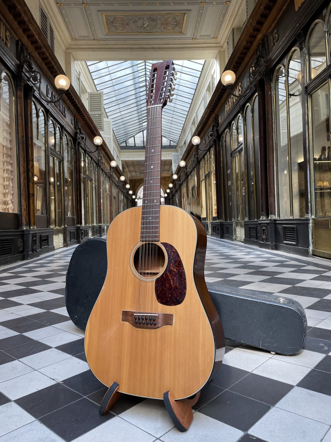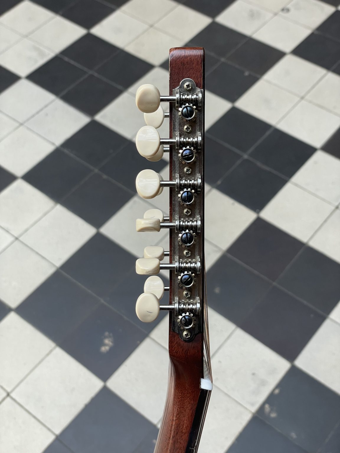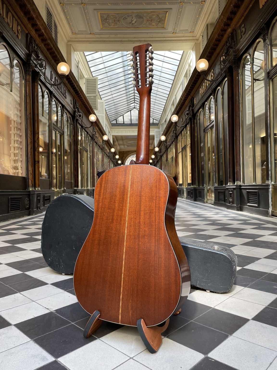 This 1968 model is much more responsive and sonically rich than the much more common 1970s models, which feature a more robust construction and a thicker rosewood bridge plate. It is equipped with open Waverly tuners instead of the heavy Grover tuners later used by Martin, which improves the instrument’s overall balance. Above all, we have taken great care to carry out all the necessary work to restore perfect playability to this instrument, which is rare to find in good playing condition since string tension will often have excessively increased the action over the decades. To address this systematic problem, we performed a neck reset on the instrument, readjusting the neck angle to recover ideal action and intonation. After a complete refret, the crafting of a new set of bone nuts and saddles, and the regluing of the bridge, the guitar is now playable as it was on its first day, with string angle on the saddle and accurate intonation.