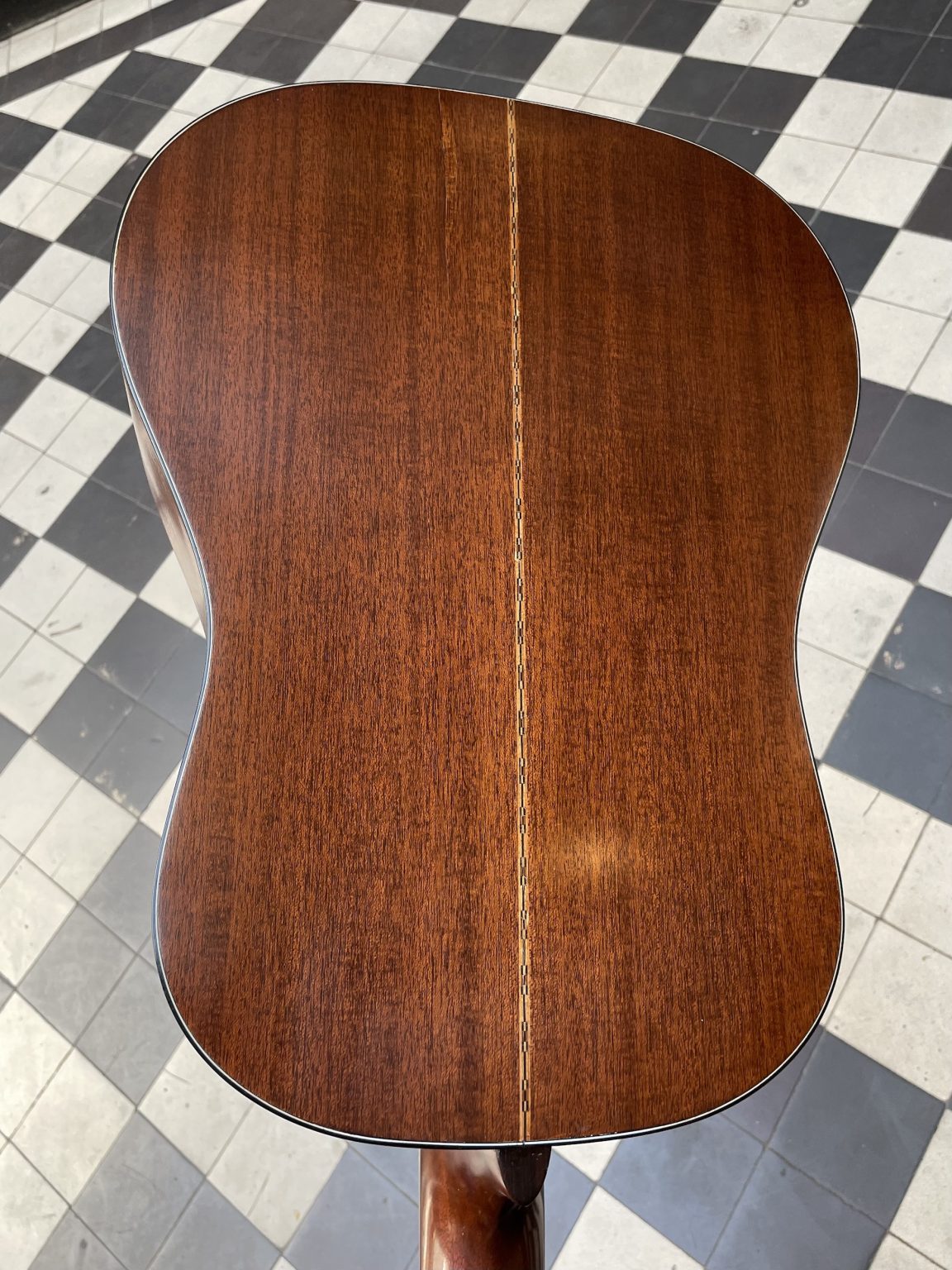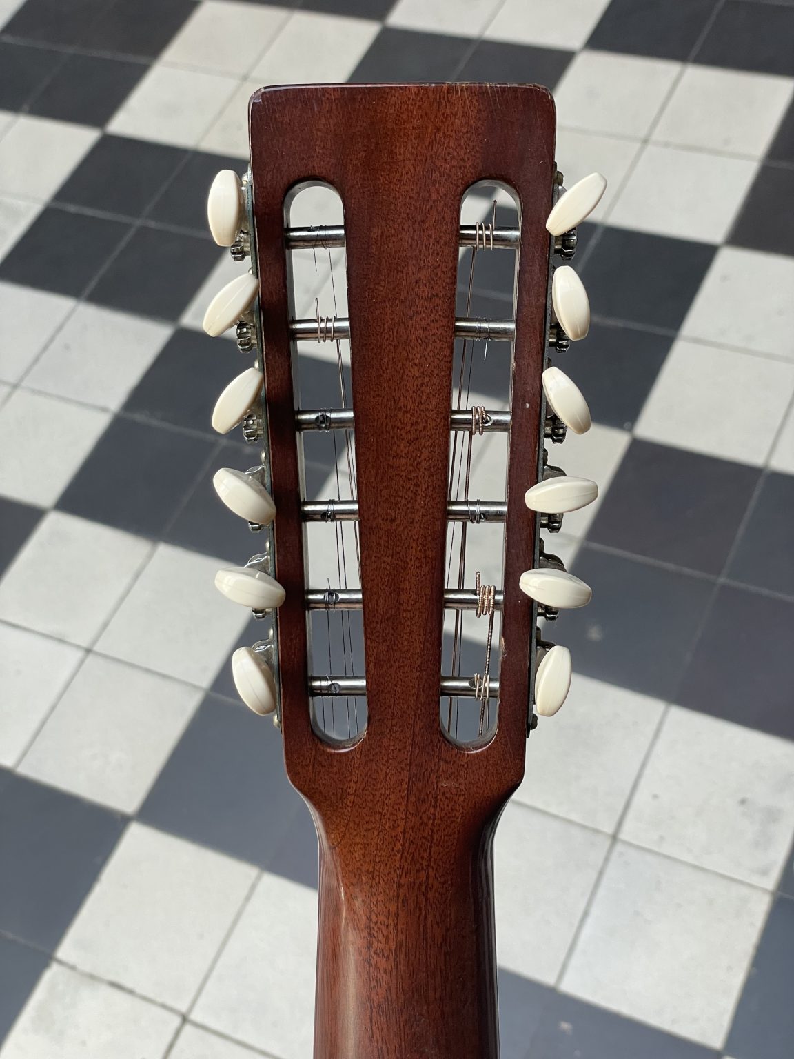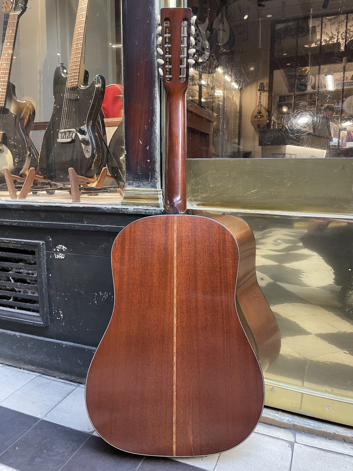 This 1968 model is much more responsive and sonically rich than the much more common 1970s models, which feature a more robust construction and a thicker rosewood bridge plate. It is equipped with open Waverly tuners instead of the heavy Grover tuners later used by Martin, which improves the instrument’s overall balance. Above all, we have taken great care to carry out all the necessary work to restore perfect playability to this instrument, which is rare to find in good playing condition since string tension will often have excessively increased the action over the decades. To address this systematic problem, we performed a neck reset on the instrument, readjusting the neck angle to recover ideal action and intonation. After a complete refret, the crafting of a new set of bone nuts and saddles, and the regluing of the bridge, the guitar is now playable as it was on its first day, with string angle on the saddle and accurate intonation.