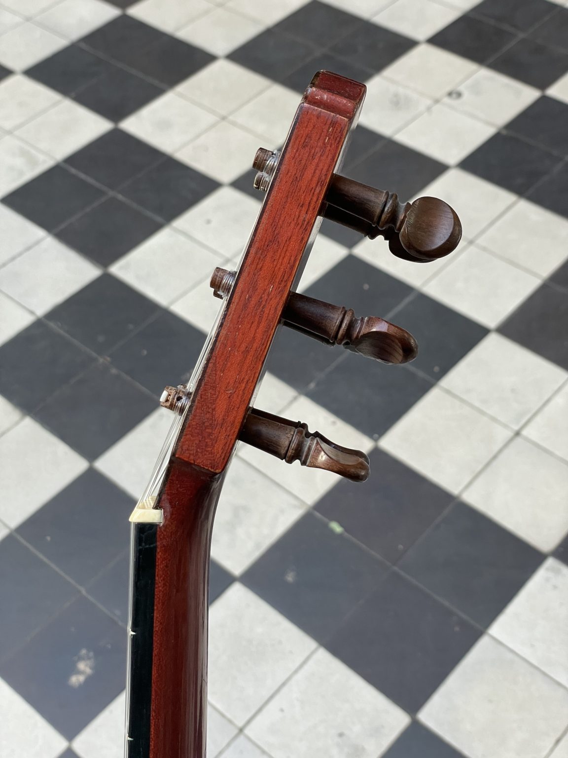 The instrument bears its original label affixed to the inside of the back, which reads: CONDE HERMANOS | Sobrinos de DOMINGO ESTESO | CONSTRUCTORES | Año 1970 | Gravina, 7 – Atocha, 53 MADRID. It was built in the workshop opened and formerly occupied by Madrid master-luthier Domingo Esteso. Trained in the workshops of Manuel Ramirez, he belonged, along with Santos Hernández, to the generation of Spanish luthiers who redoubled their efforts to modernize the instrument based on the precepts established by Antonio de Torres in the previous century.
