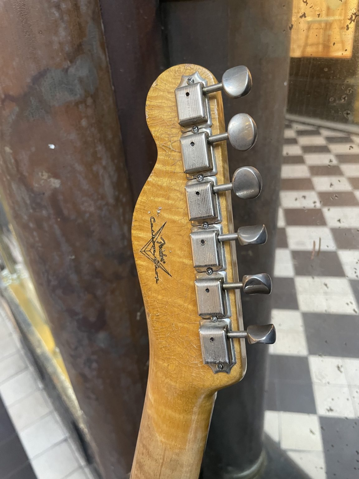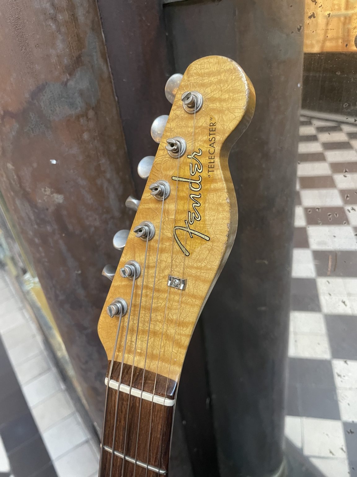 Beautiful translucent Blonde finish, flamed maple neck with rosewood fingerboard, Fender spaghetti logo in a 60s style. The guitar is equipped with a split-coil neck pickup, wired to a 4-way selector switch allowing a variety of combinations between the two coils of the neck pickup and the bridge pickup. It also features an active piezo system under the bridge to complete the sound palette, switchable using a push button on the tone pot – an ideal instrument for country fans or anyone wanting a Tele with a twist !