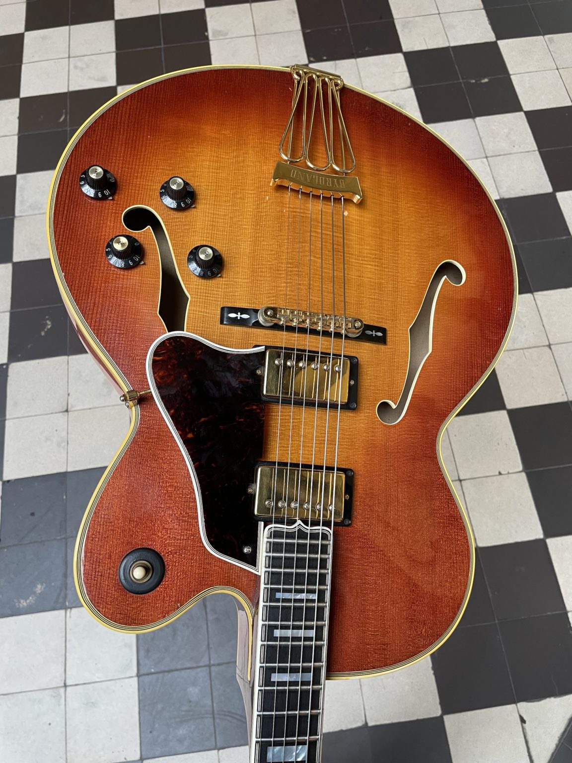 In the early 1950s, Hank Garland and Billy Byrd, two big names among Nashville session players (and incidentally proponents of Gibson guitars) informed the manufacturer of their desires for an instrument specially adapted to their needs, that of being able to play for long hours in recording studios without getting tired: the result is the Byrdland model (so named by the union of the two musicians’ names, and, surely by coincidence, sharing that of a prestigious New York jazz club!). The general shape borrows from that of the L-5 model, but is reduced in thickness making the Byrdland the first thinline archtop ever produced. The scale length is reduced to 23.5 inches instead of the 24.75 which is the norm on the majority of Gibsons: this not only facilitates access to the top of the neck, but also allows great playing comfort, including for the most tenuous fretting positions. Equipped with two pickups (originally Alnico single coils, later humbuckers), the model also offers a wide sound palette between the roundness of the neck pickup and the biting edge of the bridge pickup. In short, the perfect instrument for those who want great versatility in a variety of playing contexts.