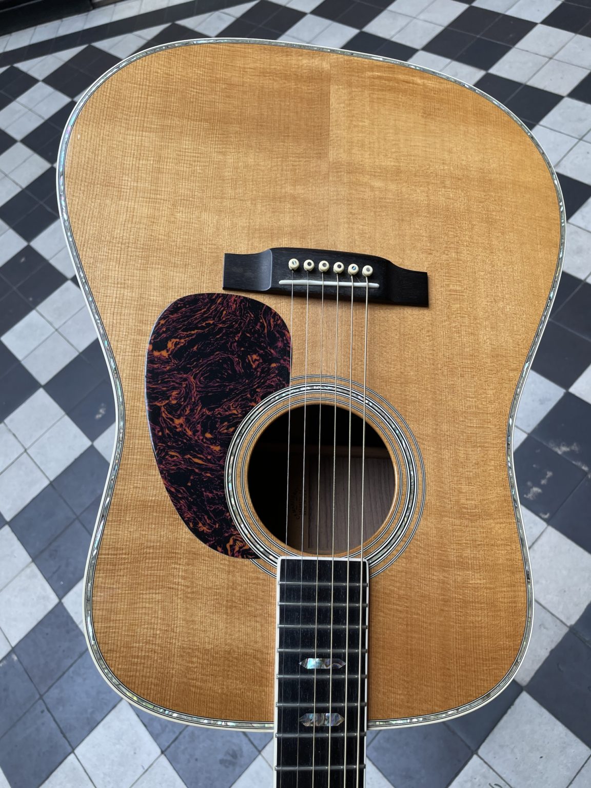 This instrument is from a relatively recent production compared to the Martin instruments we are used to presenting, but has absolutely no reason to pale in comparison to its predecessors: a splendid appearance and the timeless sound of Martin flat-tops are there, and after having applied ourselves to optimizing the set up of this guitar it is perfect to play, with a low action and a accurate intonation.