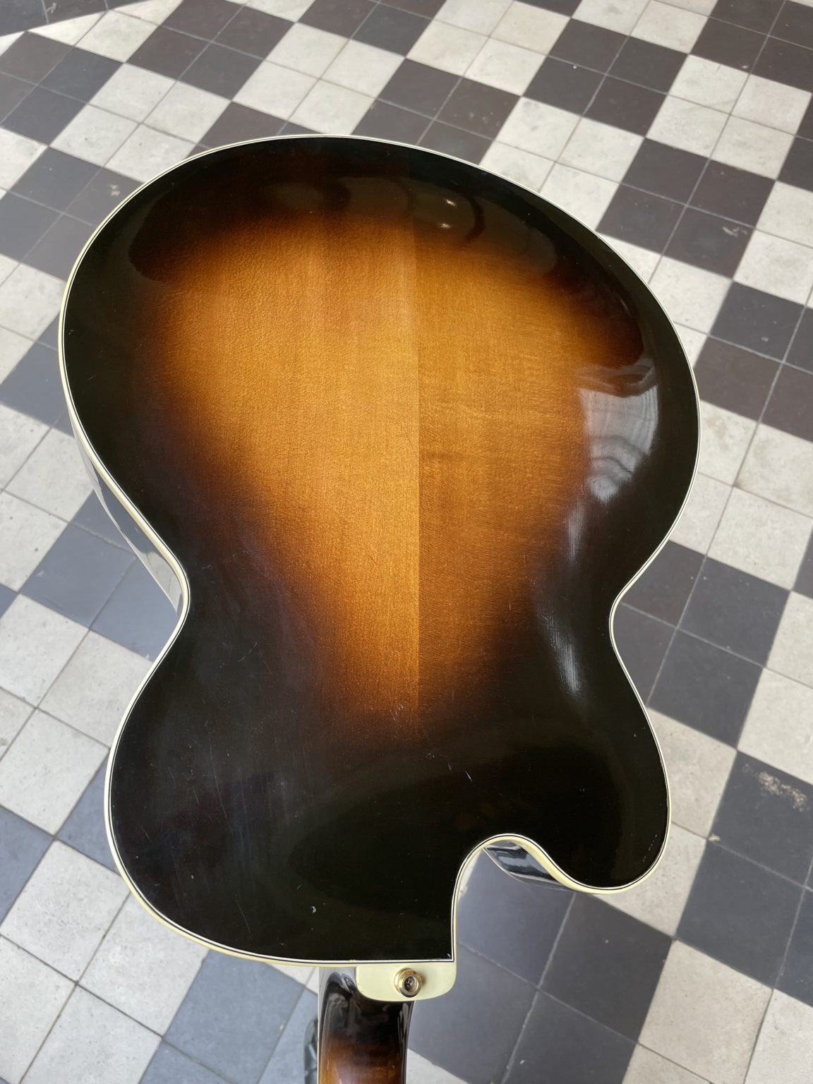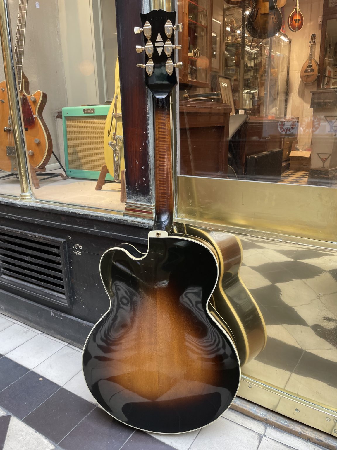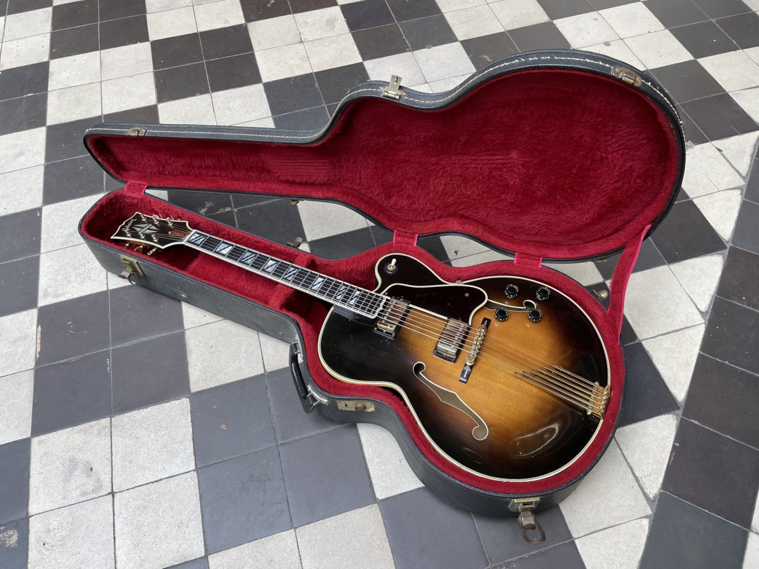 The Super V CES is without a doubt in line with the great archtop guitars produced by Gibson, since it is a perfectly high-end guitar built from solid carved woods (spruce for the table, maple back and sides) with all gold-plated hardware – combining many of the most coveted features on Gibsons, the Super V is indeed a rare bird and could prove to be a winning bet for the well-informed guitarist. This beautiful example from the second year of production (during which only 85 were be produced) is in very good original condition, and has had a complete professional setup in our workshop in order to ensure perfect, comfortable playability.