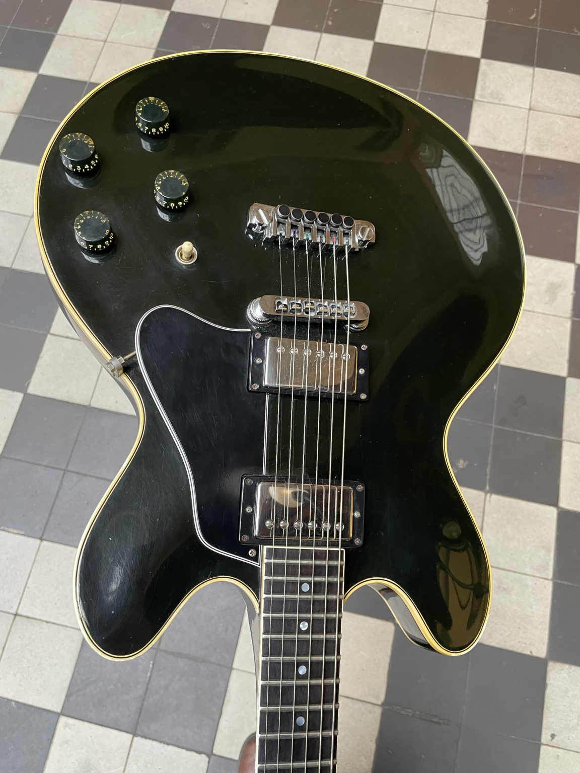 An interesting model produced according to B.B. King’s specifications: in short, the instrument is very close to an ES-335, with the difference that it does not have f-holes, and the two humbucker pickups are wired so as to be used in mono, or in stereo where each pickup can be connected to a separate amplifier.