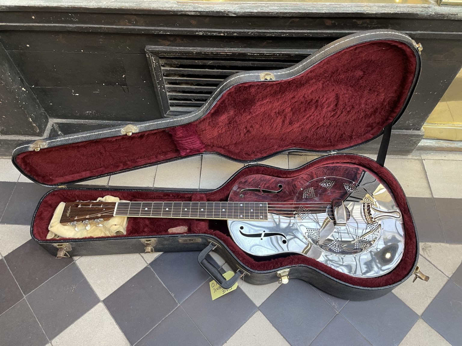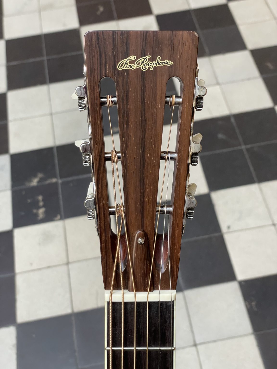 A very nice 2005 Fine Resophonic resonator, built by Mike Lewis in the style of a 12-fret National Style O from the early 1930s.