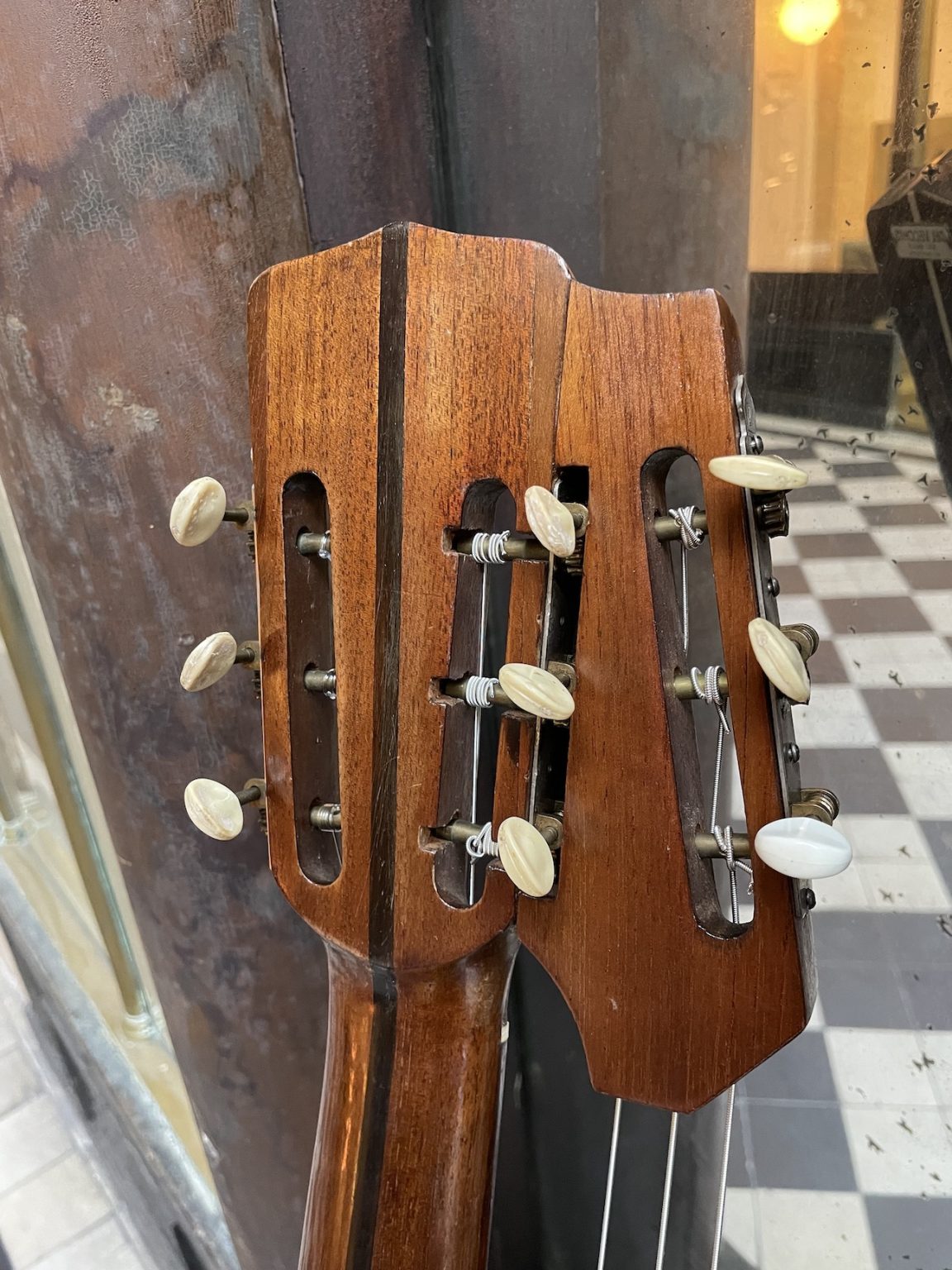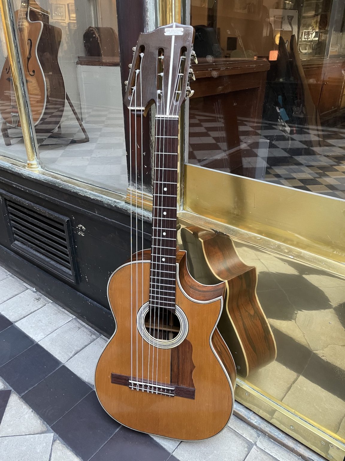 A beautiful instrument built by the Casa Del Vecchio company in São Paulo, Brazil. Founded in 1902 by Angelo Del Vecchio, this guitar manufacturer has produced all sorts of plucked string instruments, most notably resonator guitars which captivated the interest of a certain Chet Atkins.