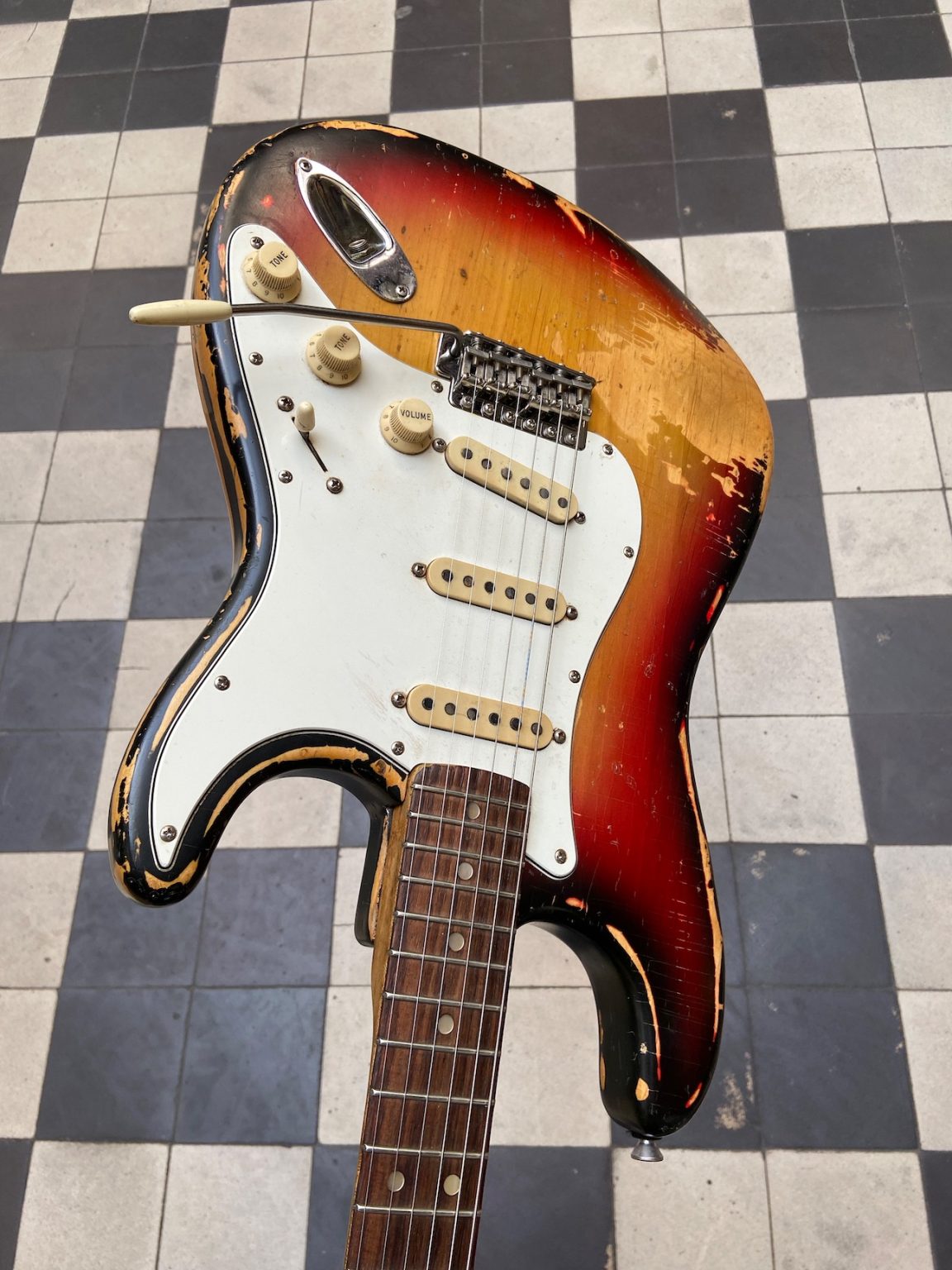 Stratocaster sunburst de 1973 à la patine magnifique.