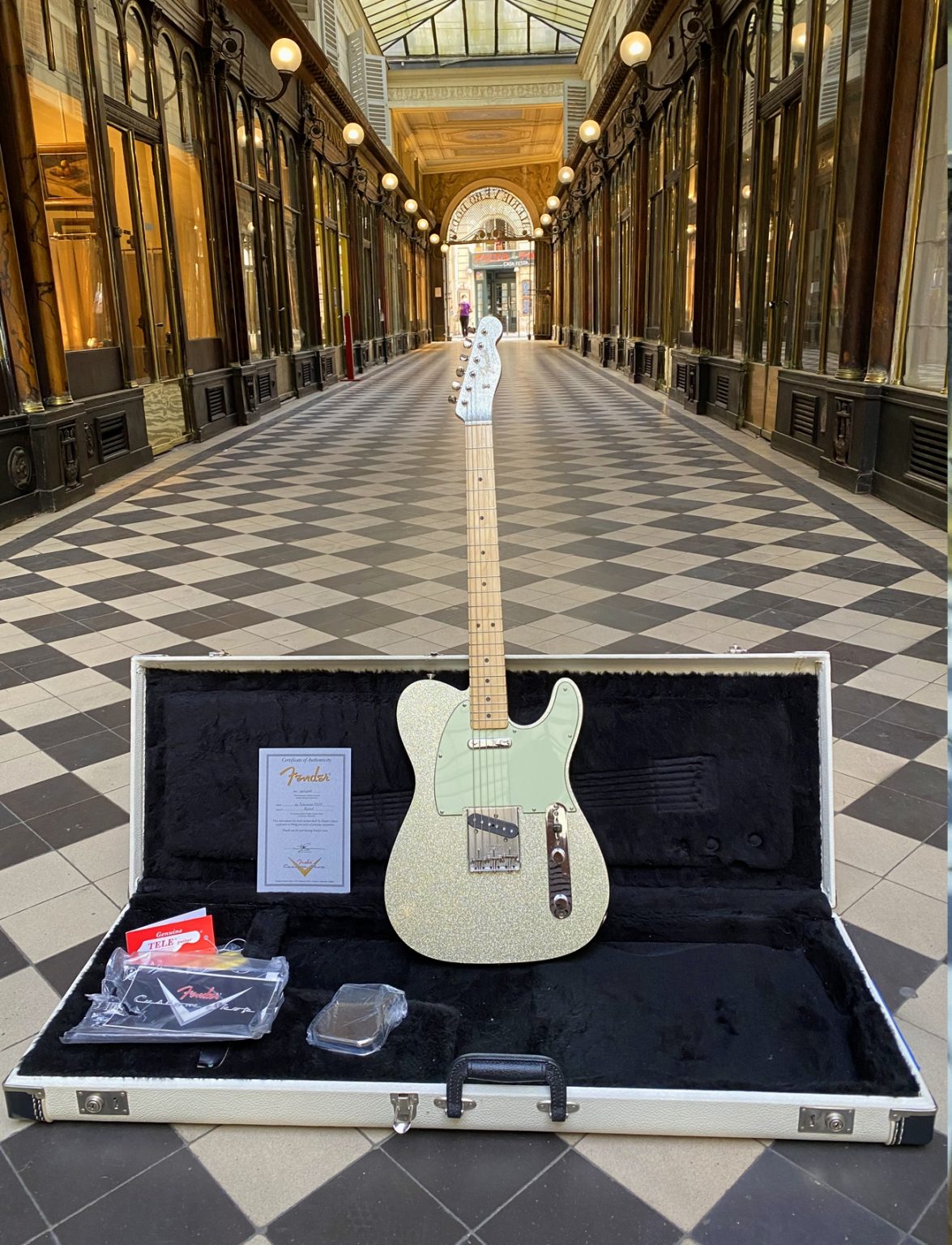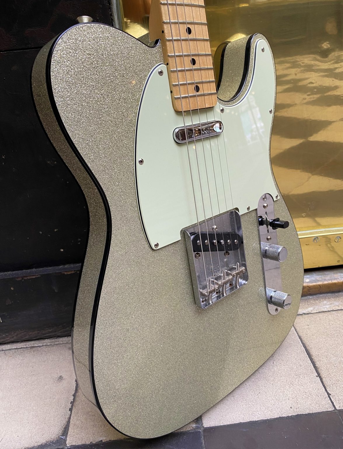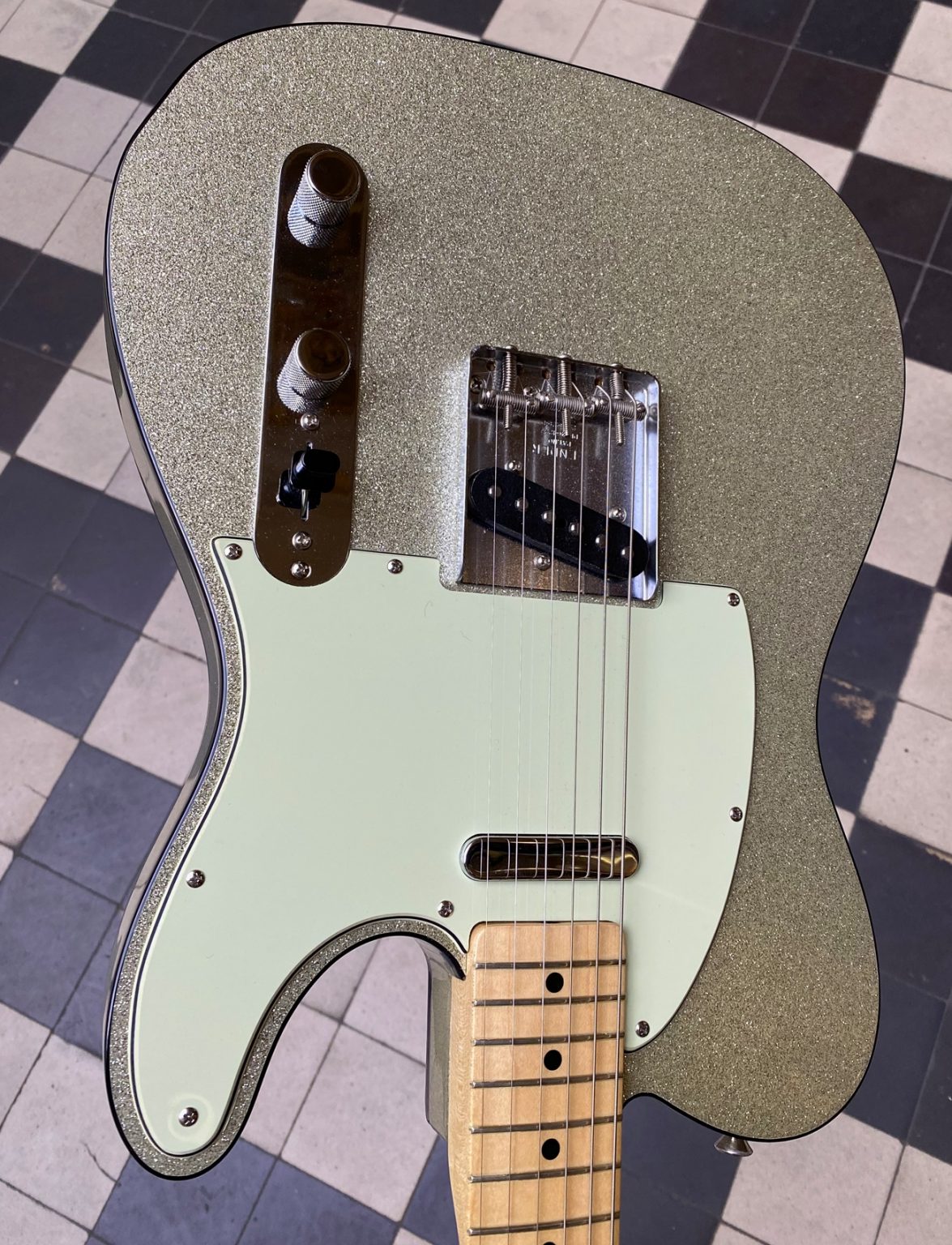 Belle finition Silver Sparkle, touche rapportée en érable et binding noir. Micros typés 60’s.