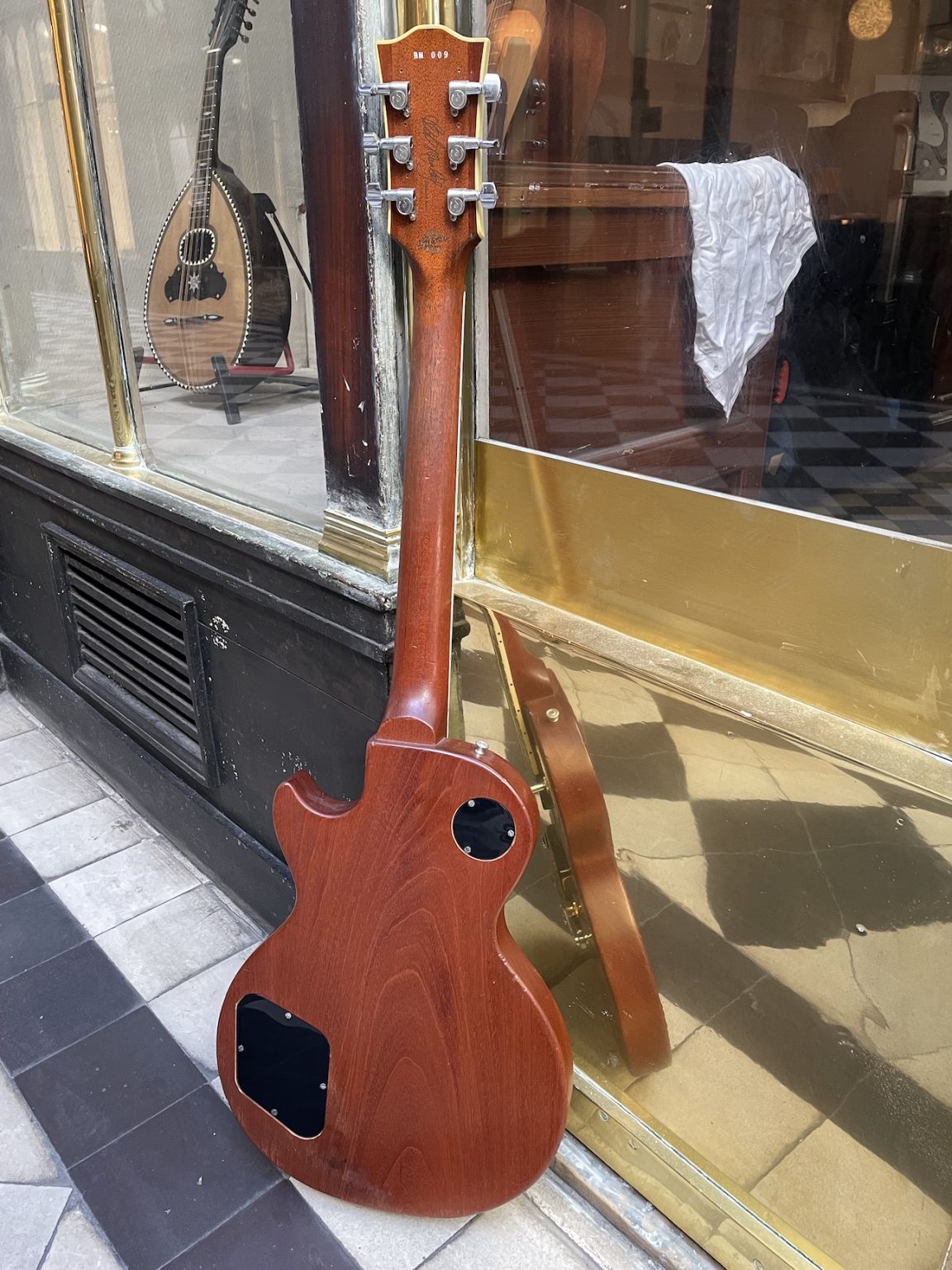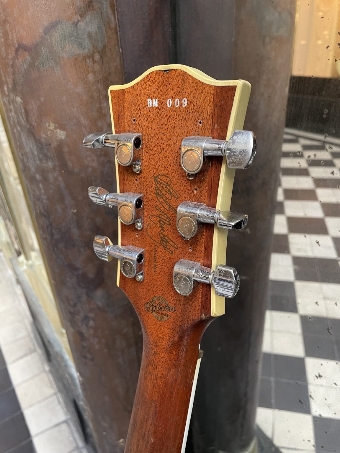 This rare guitar is an exact replica of the instrument Bob Marley used for years onstage and in the studio, now preserved in the Bob Marley Museum in Kingston, Jamaica. This replica goes as far as copying every modification and repair the original instrument underwent during its time of use: the stripped finish, the block fretboard inlays, the white headstock binding, the aluminium pickguard and the pickup selector plate are exactly identical to what can be found on the real deal. The guitar comes equipped with two P-90 pickups, each wired with indépendant volume and tone controls, producing a sound very close to that of a 1950s Les Paul Special. Only 200 copies of this instrument were ever made.
