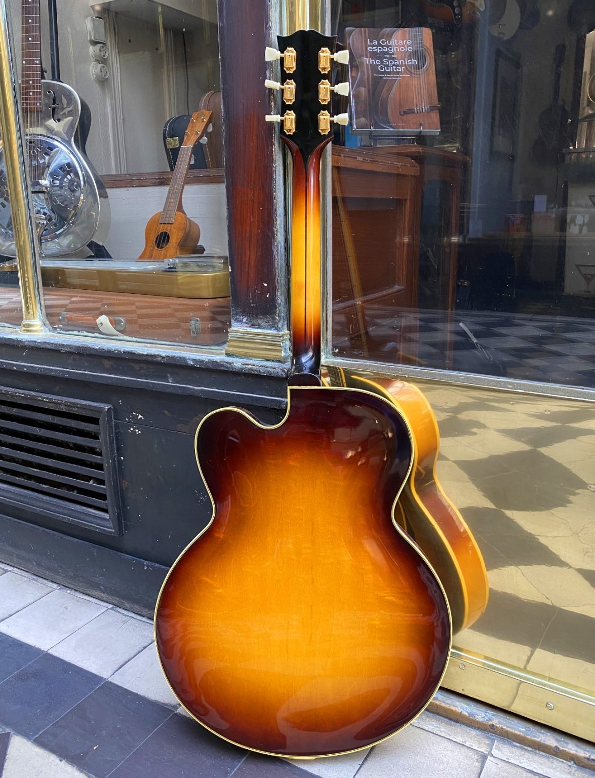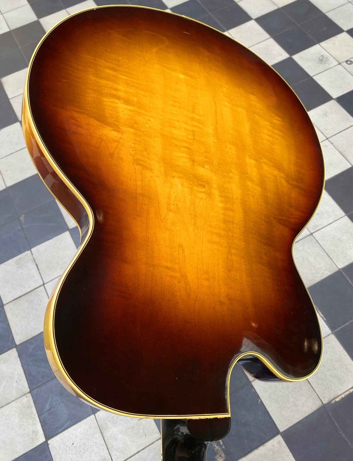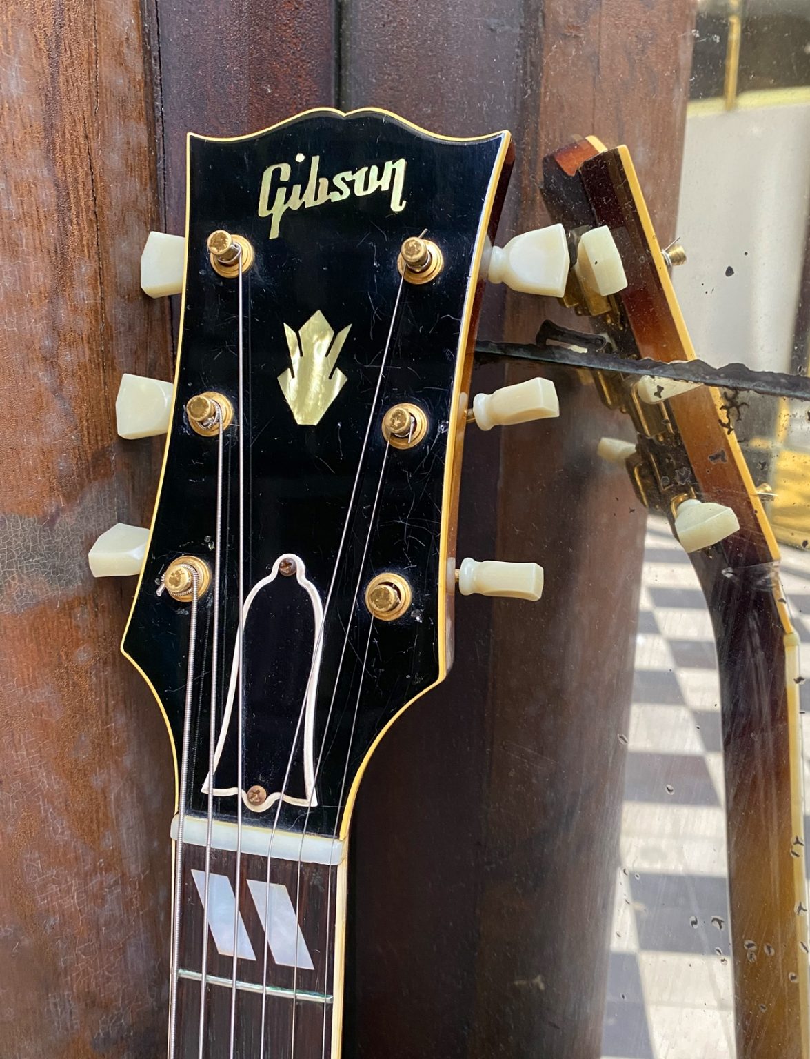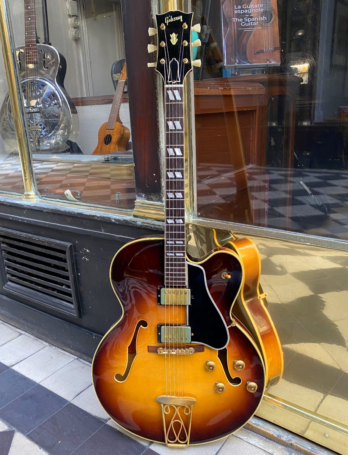 La version “Thin Line” du modèle 350 fut introduite courant 1955 au catalogue Gibson, simultanément à l’iconique Byrdland. Equipées à l’origine de micros P-90, comme sur celle jouée par Chuck Berry, ces derniers furent remplacés progressivement après 1957 par les humbuckers “Patent Applied For”.