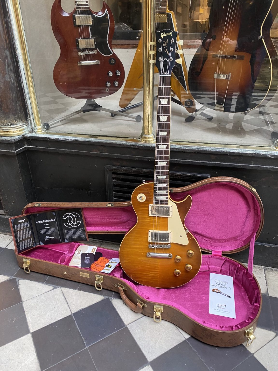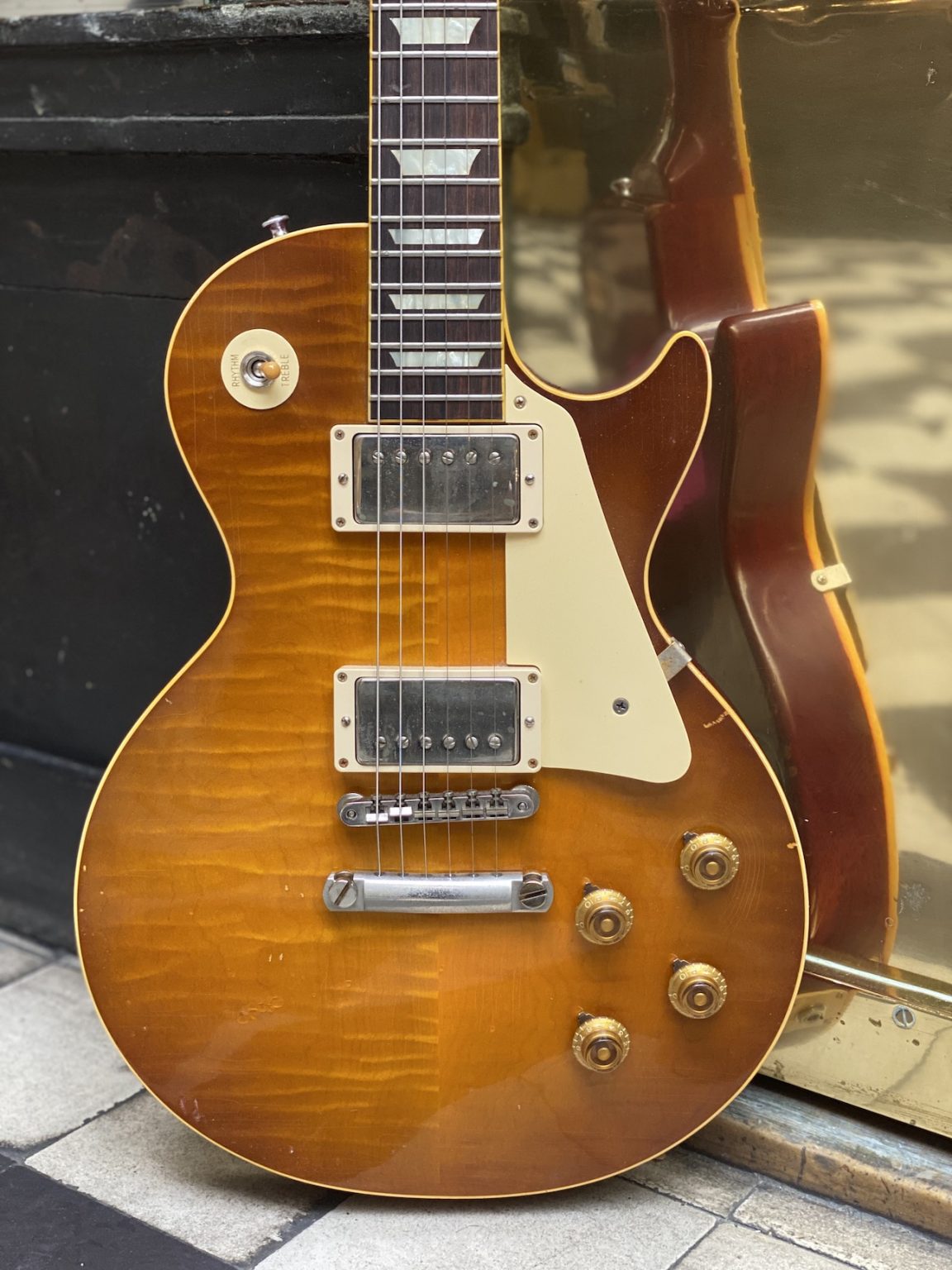 Superbe Les Paul ’59 de la série Collector’s Choice en finition Dirty Lemon Burst.