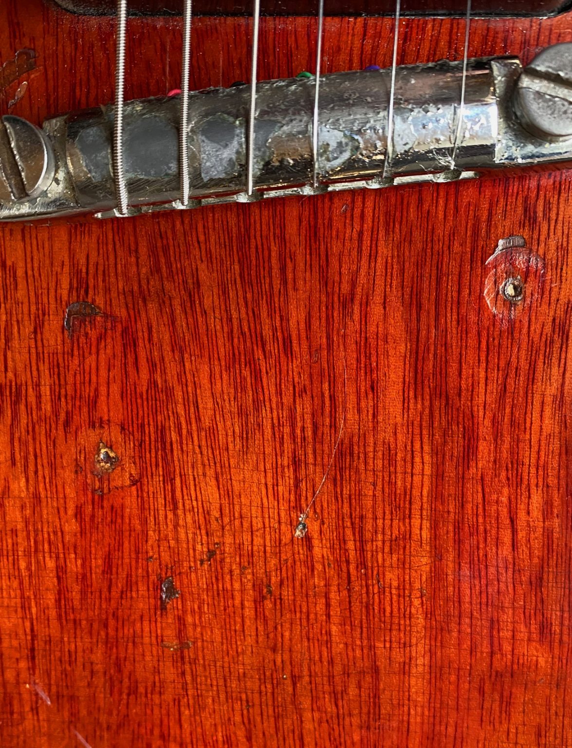 Marques d’usage et petits trous bouchés suite à l’installation d’un vibrola.