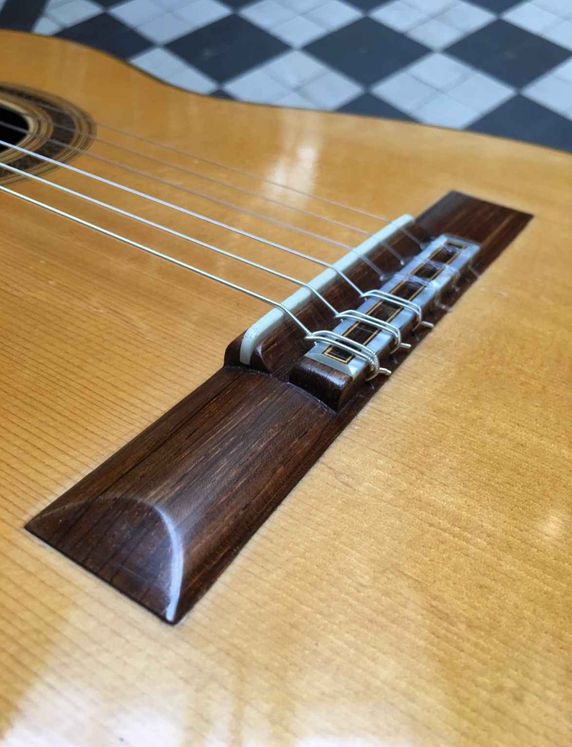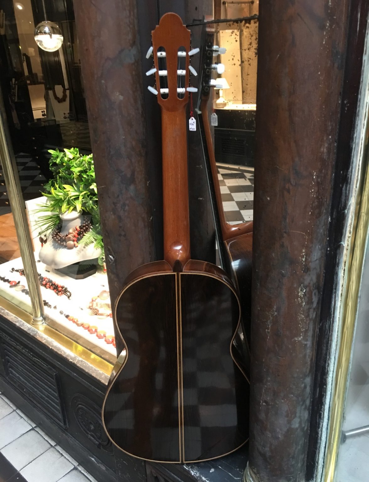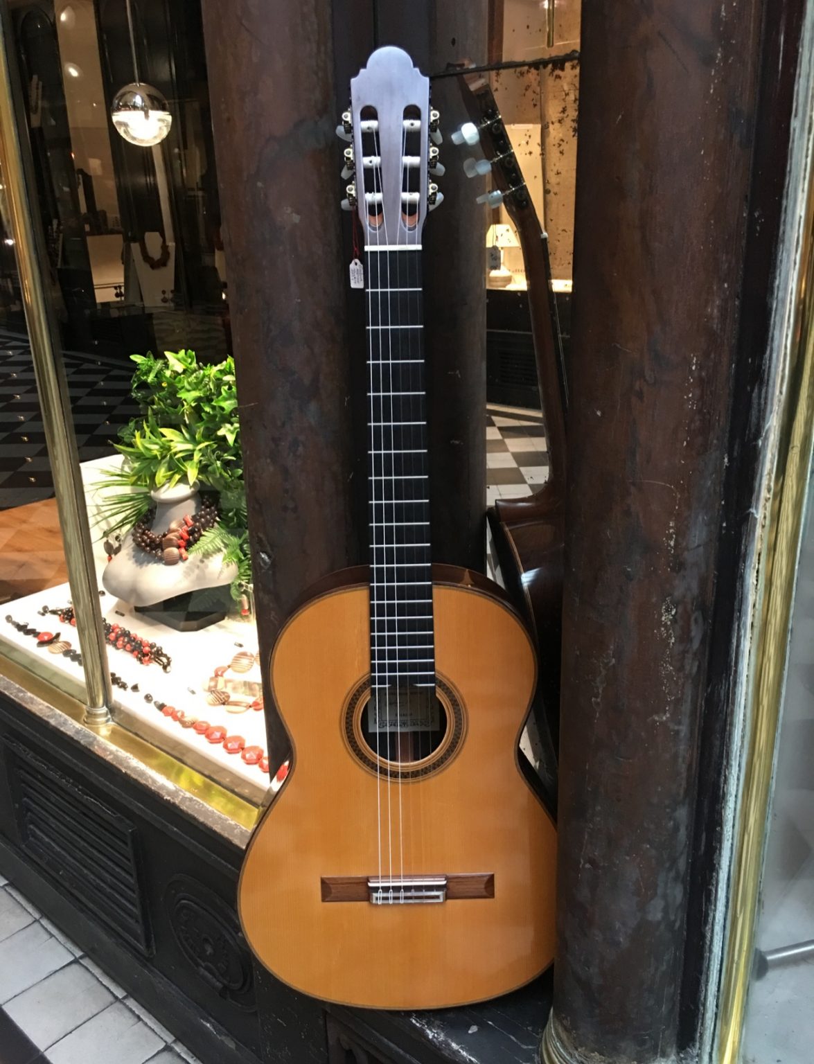 Guitare fabriquée par le célèbre luthier de Grenade, dont elle porte la signature à l’intérieur de la caisse. Belle table en épicéa chenillé, fond et éclisses réalisés dans un magnifique palissandre. Marques d’usage, marque laissé par l’impact d’une corde sur l’arrière du chevalet.
