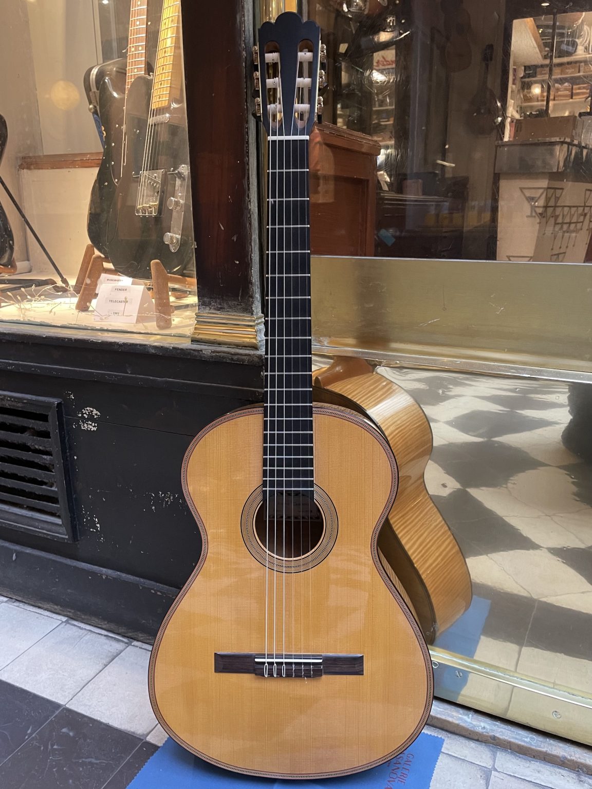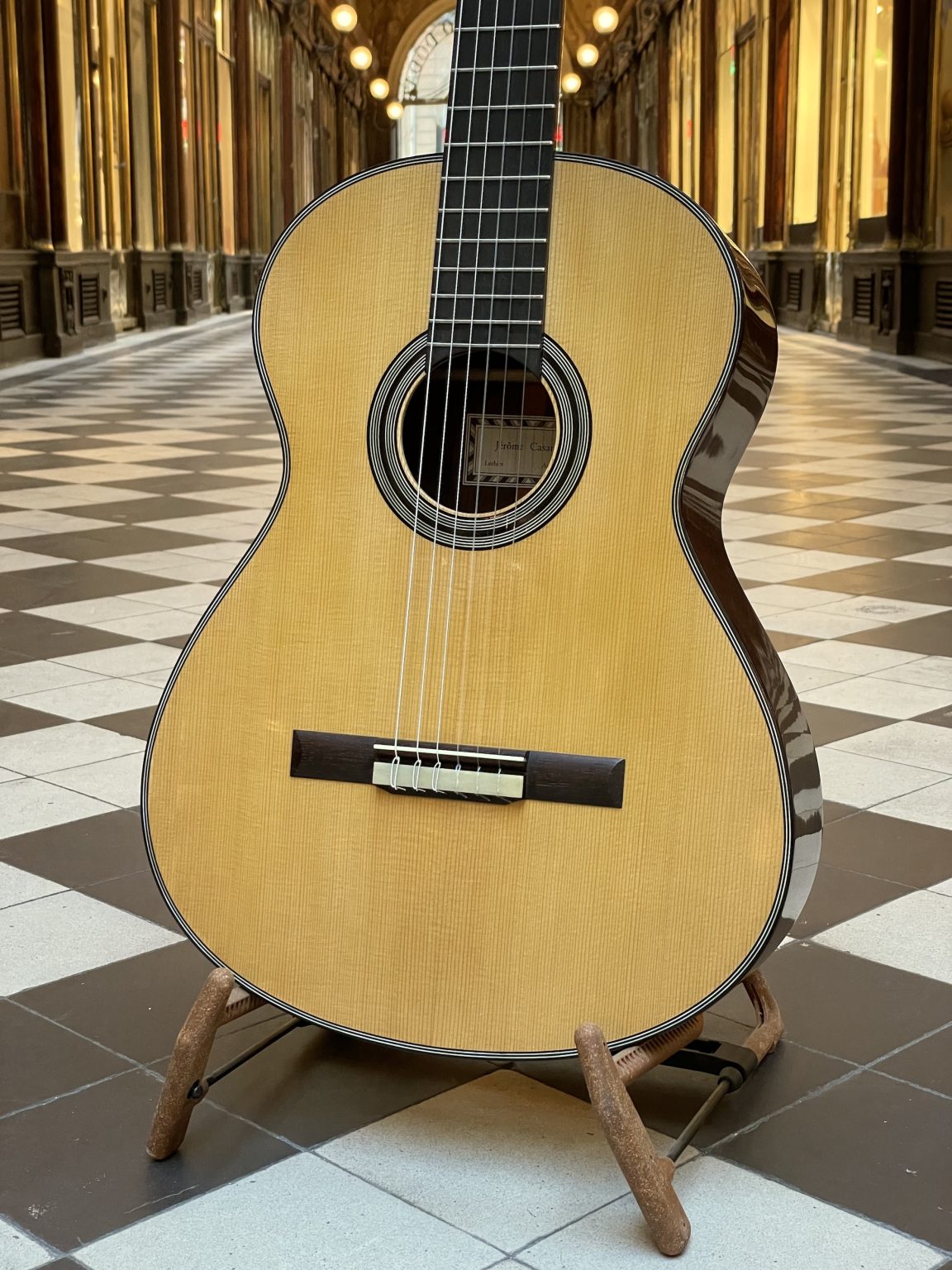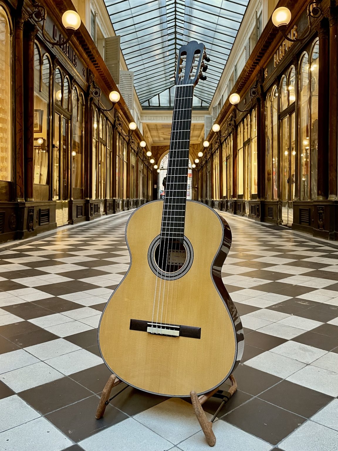 Here is my interpretation of the traditional Spanish guitar: a feather-light instrument, with perfect playability and a very rich voice. Traditional French polish finish, hide glue. Different wood and appointment options availbale , please enquire.