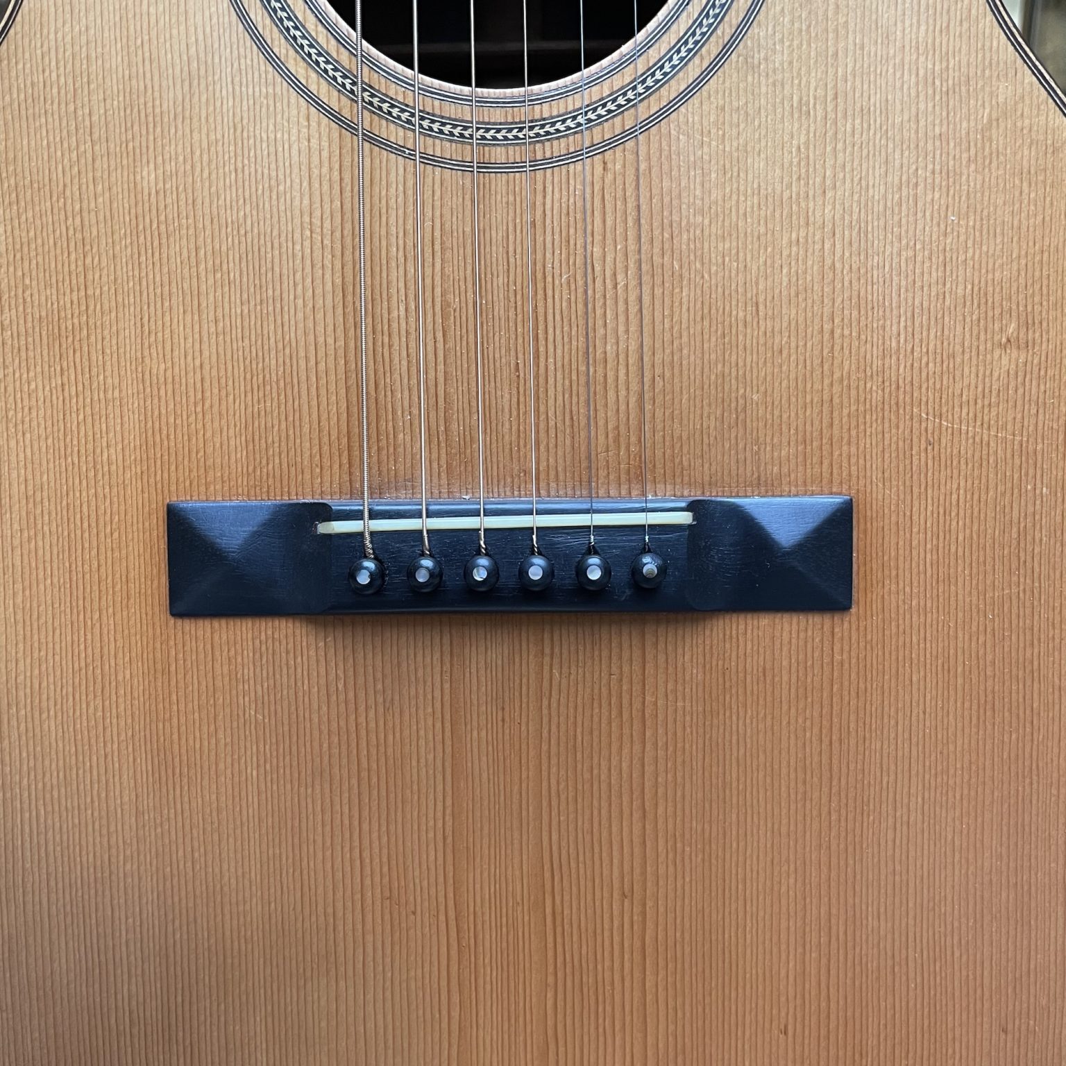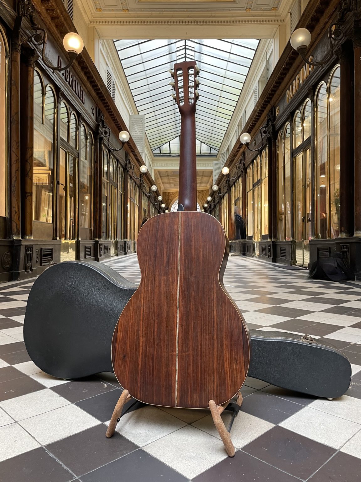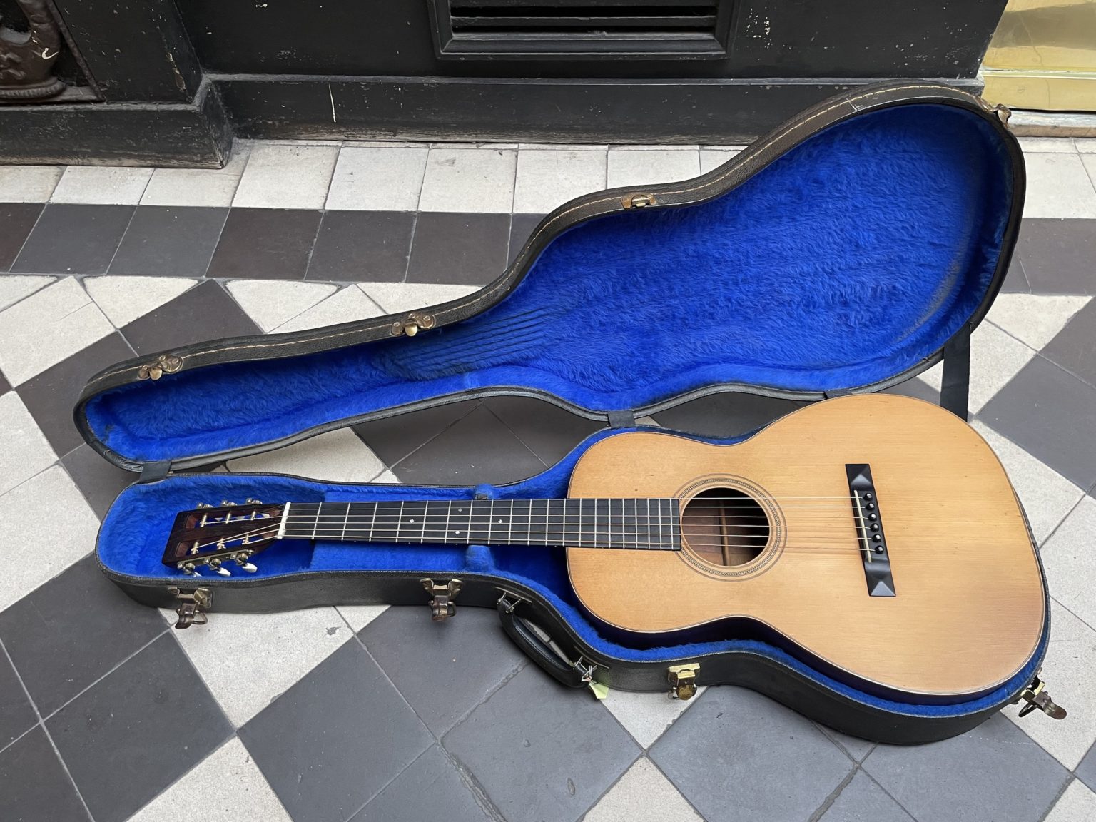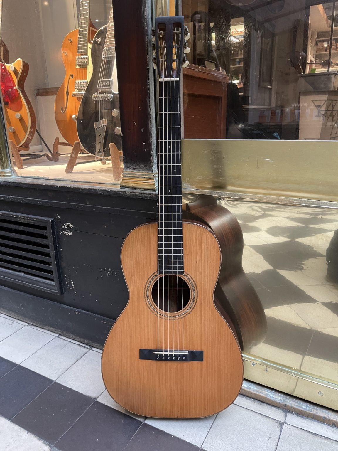 Dans l’ensemble, cette Martin quasiment centenaire est un instrument exceptionnellement plaisant à jouer, très légère et étonnamment sonore malgré son petit gabarit – la finesse du barrage qui était de mise à l’époque de sa construction permet la pleine vibration de la table d’harmonie. Nous relevons que la mortaise de tête de la guitare a été modifiée par le passé, cette opération est ancienne. Préparée et réglée par nos soins, en parfait état de jeu.