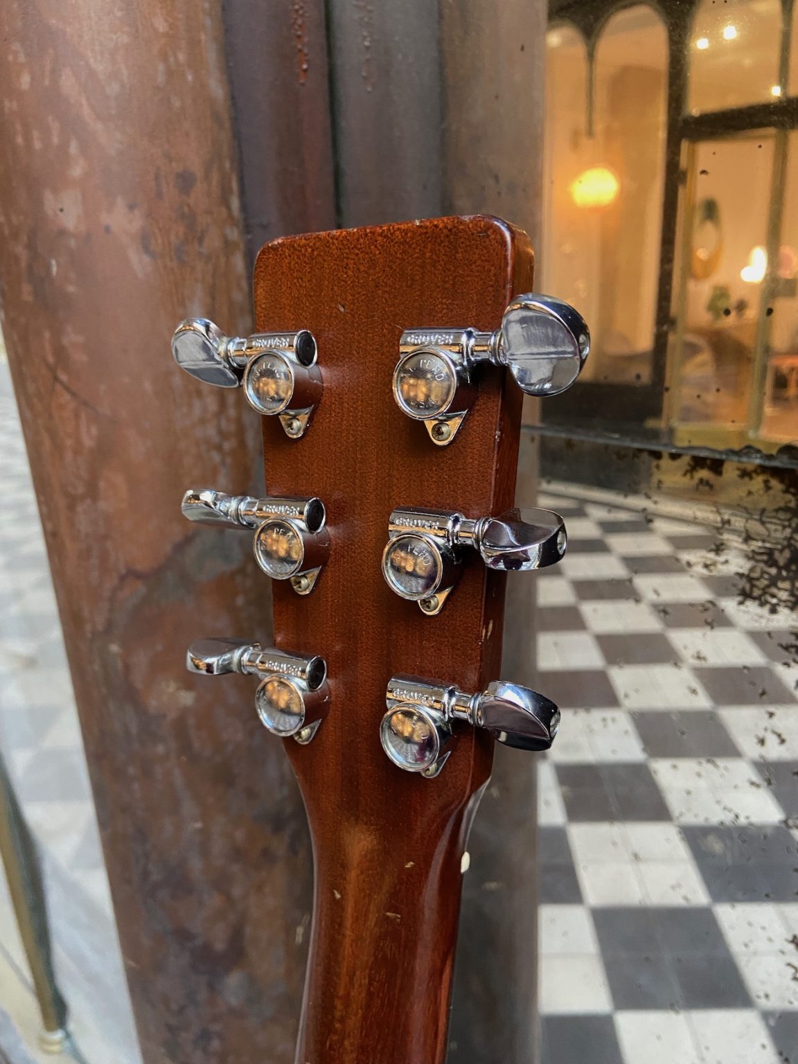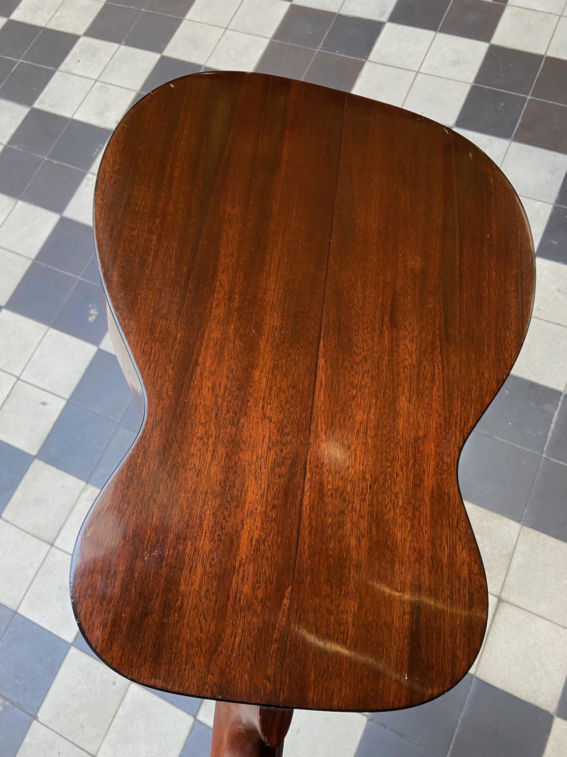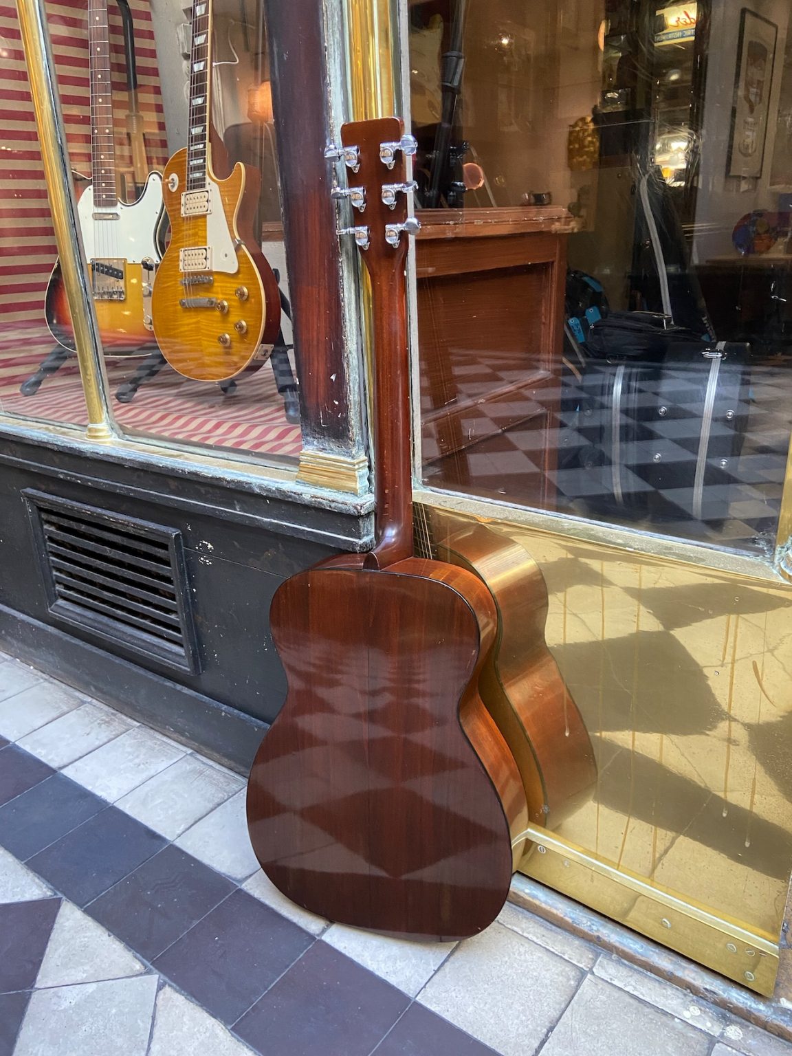 Préparée et réglée par nos soins : neck-reset, refrettage et sillets en os.