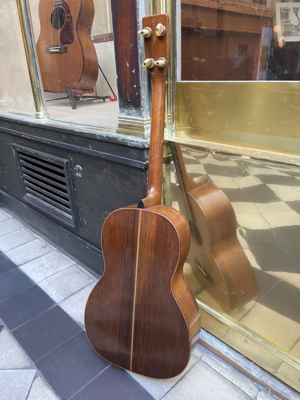 This small-sized model, offered in style 21 – the most affordable rosewood style offered by Martin at the time -, came in at a time where the demand for tenor guitars was going through the roof. By the mid 1920s, many tenor banjo players had turned to the softer tone of the guitar, and the tenor guitar allowed them to get just this without having to learn a new playing technique or tuning. The 5-21T model offers all of the characteristics found on other style 21 instruments: spruce top, rosewood sides and back, with a herringbone design around the sound hole and the across the backstrip.