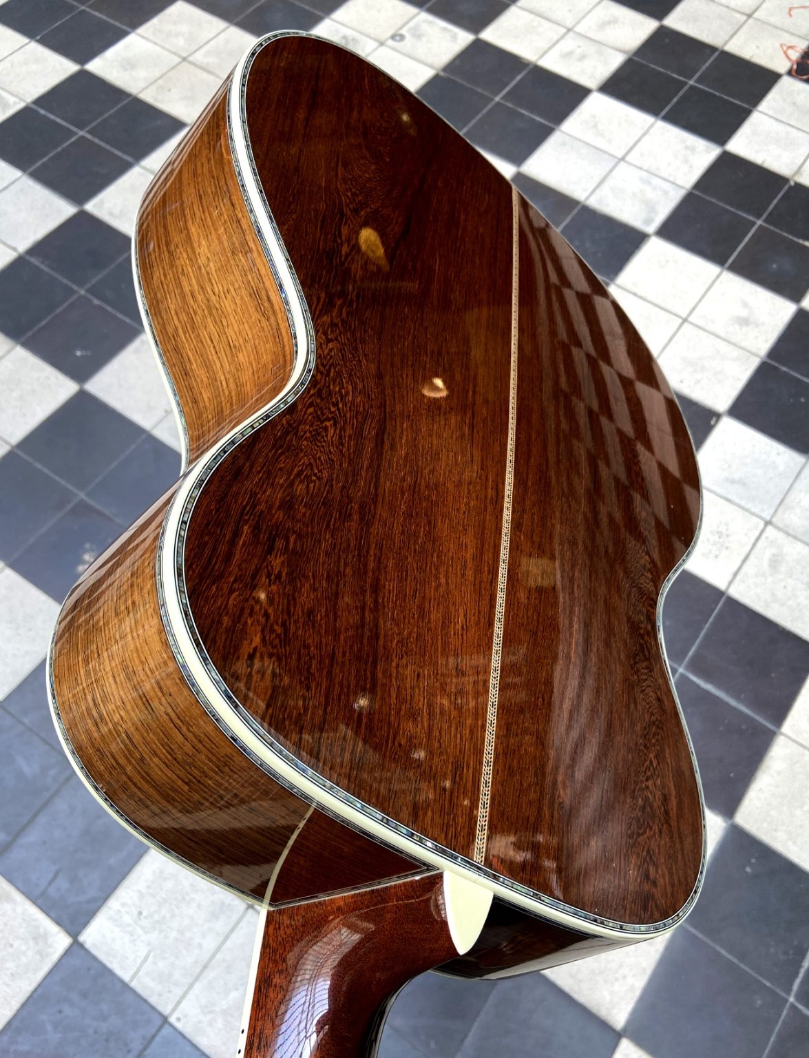 Table en épicéa d’adirondack, fond et éclisses dans un très beau palissandre de Madagascar.