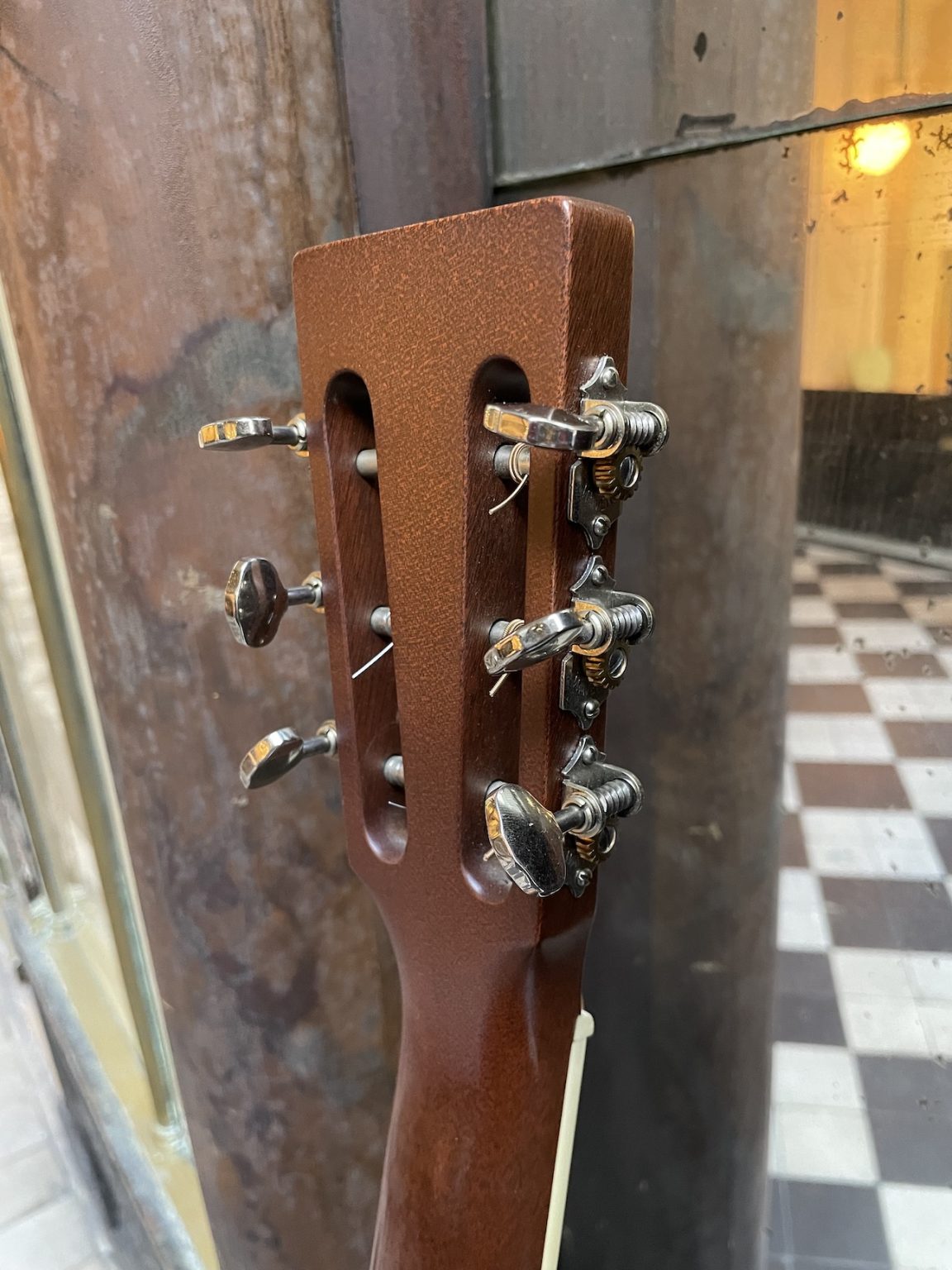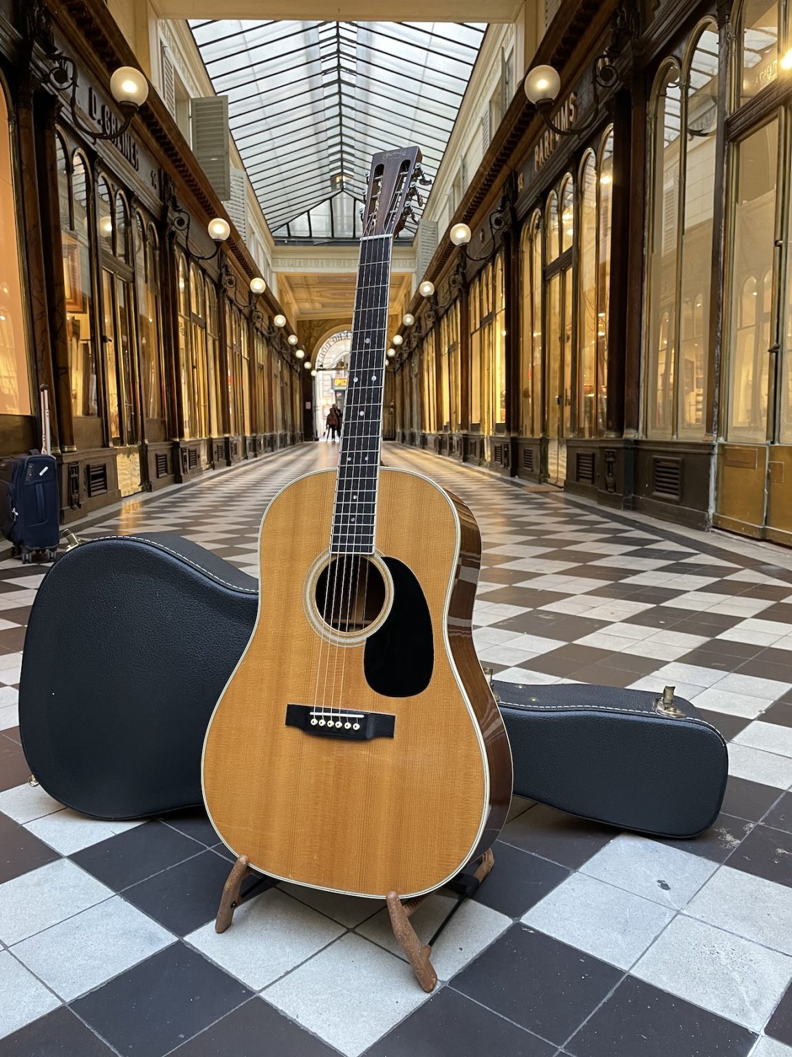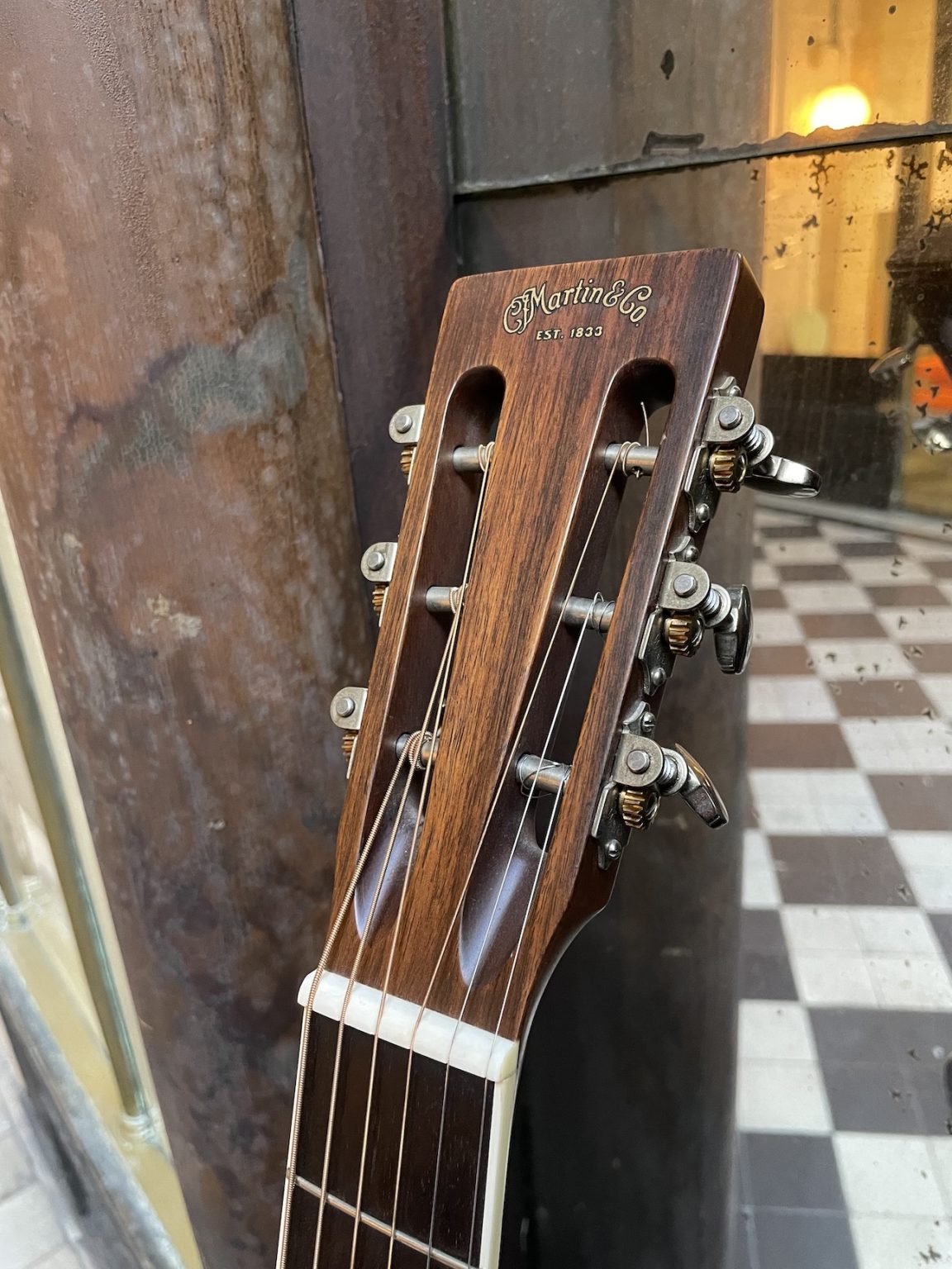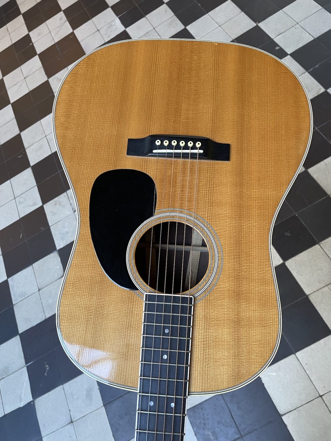 Style 35 made its first appearance in 1965, and is set apart from style 28 due to its three-piece rosewood back – a consequence of the shortage of Brazilian rosewood large enough to build two-piece backs. Elaborate binding which included a bound fretboard. This model’s specificity lies in the 12 fret neck and open headstock, which are denoted by the S suffix in the model name.