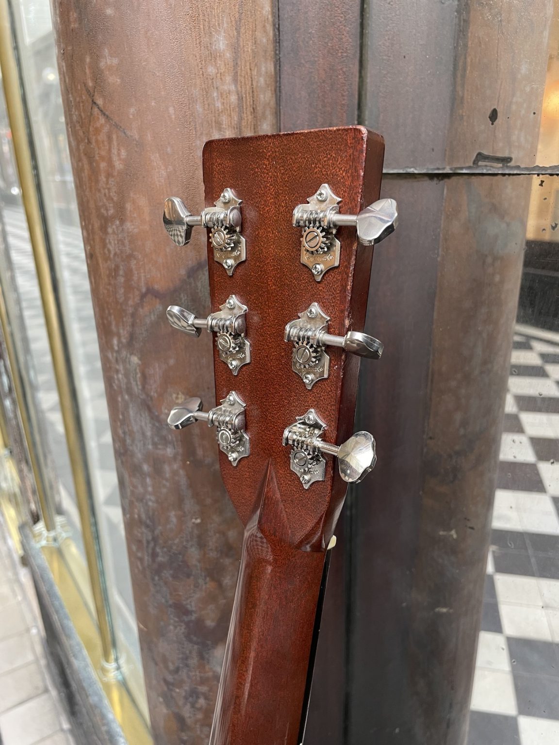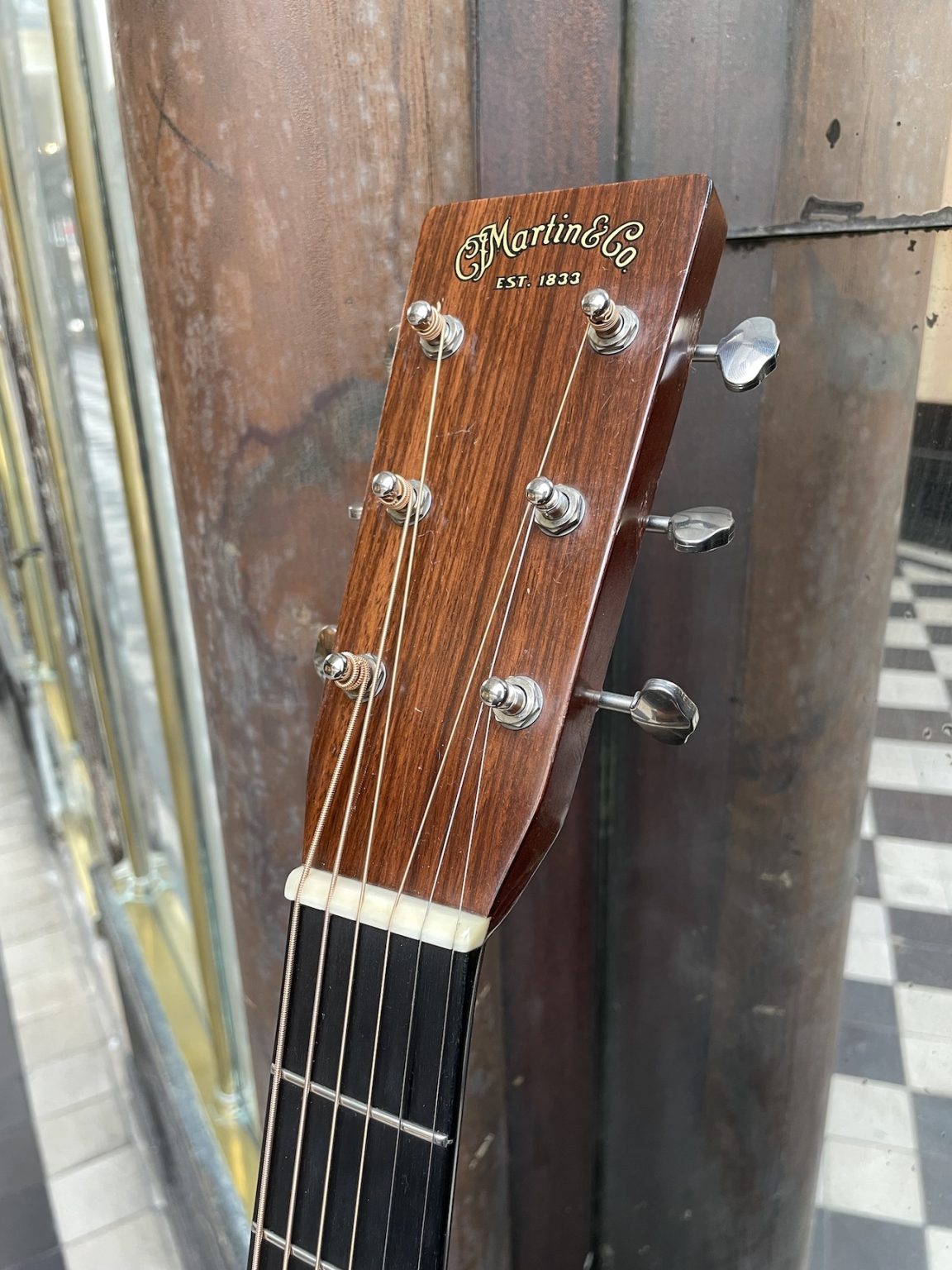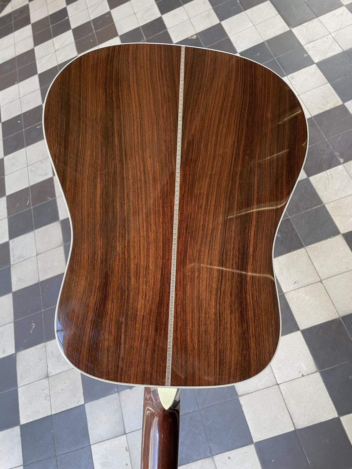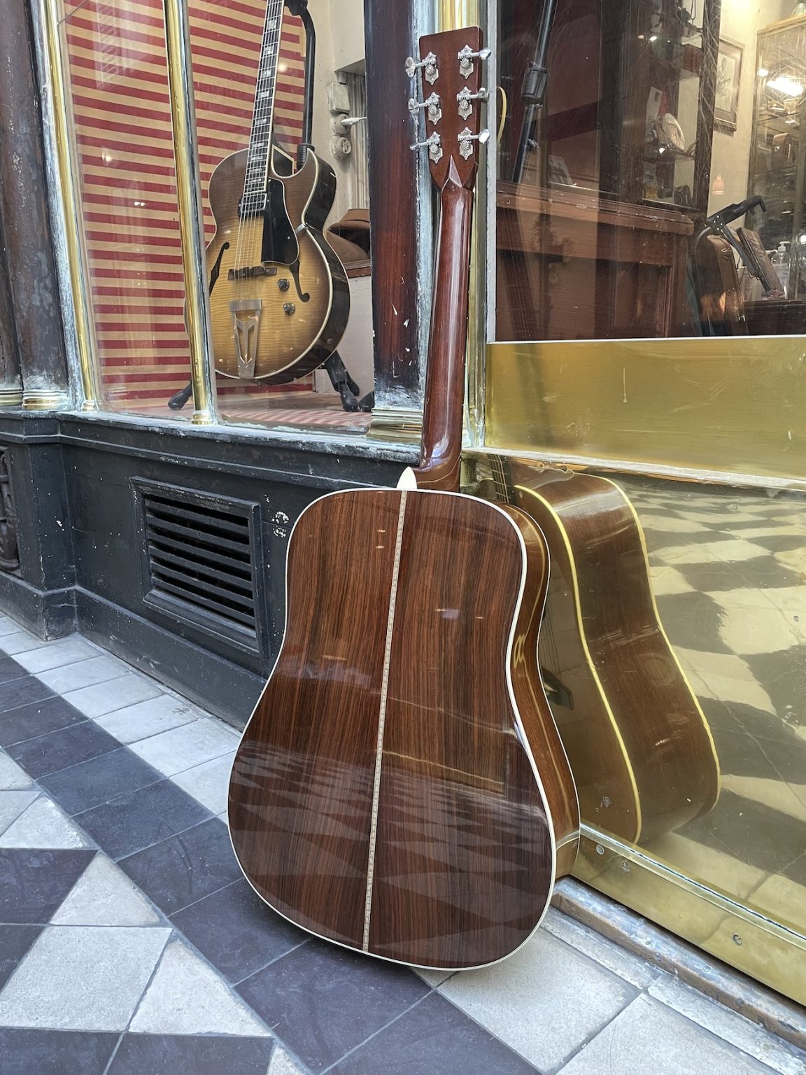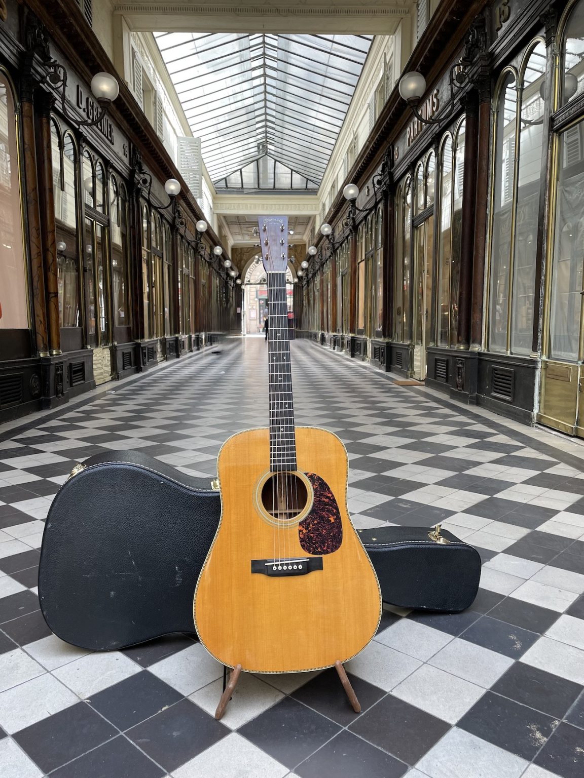 Possiblement le modèle phare de la ligne moderne des dreadnoughts Martin, la sortie de cette guitare en 1977 marque le retour du fabricant vers ses fameux instruments pre-war, autant au niveau de la construction, de par le barrage scallopé de la guitare, que de l’esthétique, avec la rosace décorée d’un motif herringbone et le joint de fond ornementé. Instrument en parfait état de jeu, réglé et préparé par nos soins.