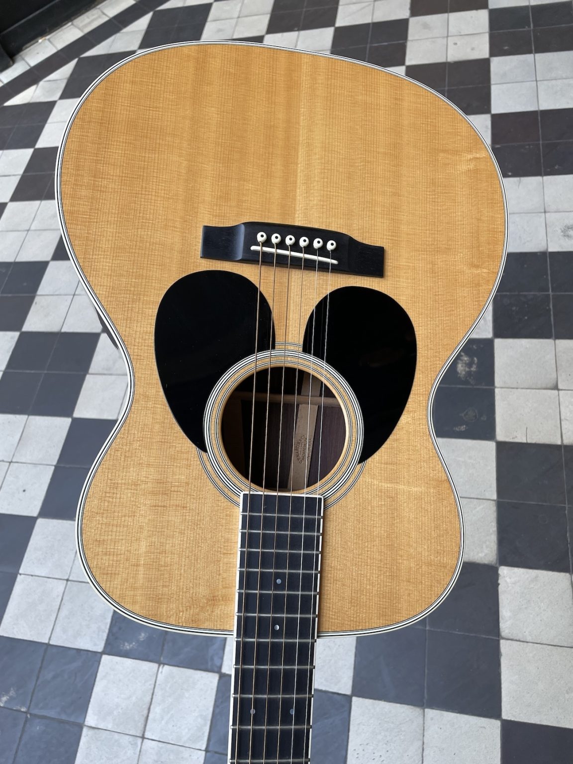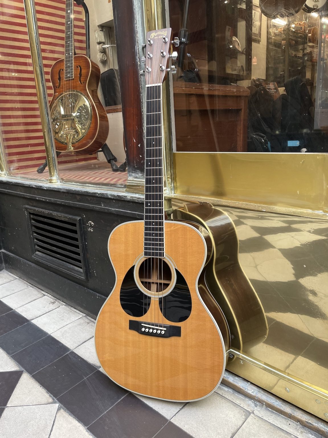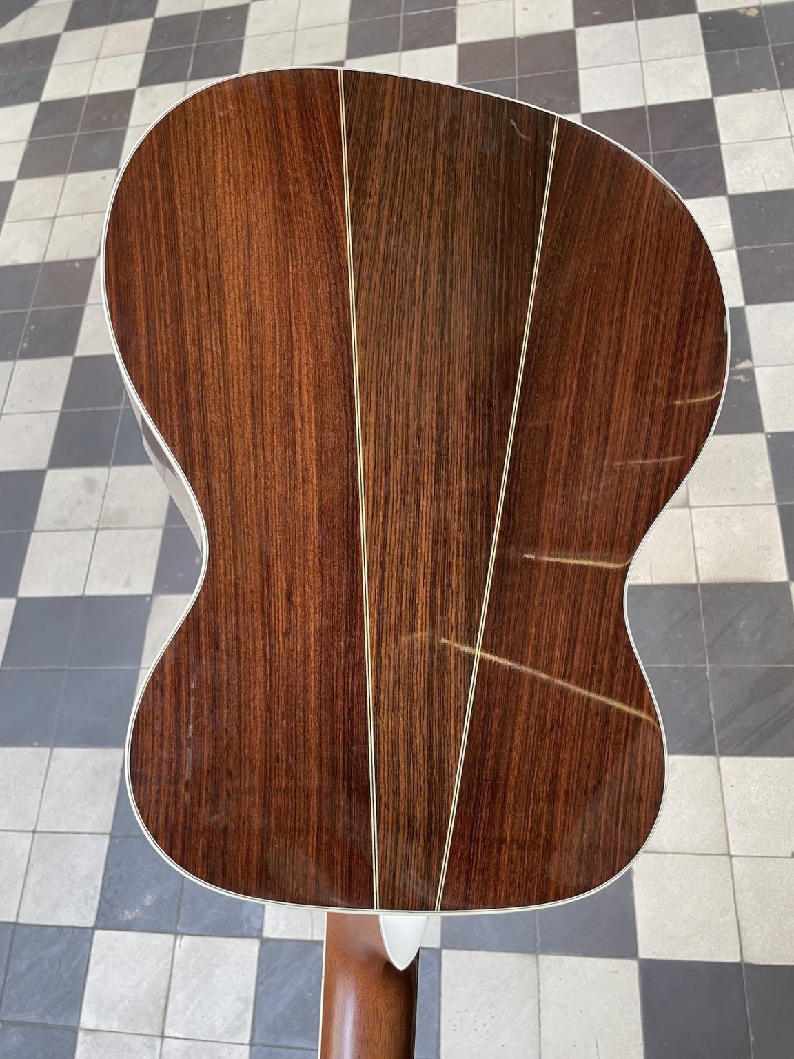 This guitar was originally a right-handed model, but was modified with a second pickguard and setup by Alain Quéginer for left-handed players. In perfect playable condition, complete professional setup done at our workshop.