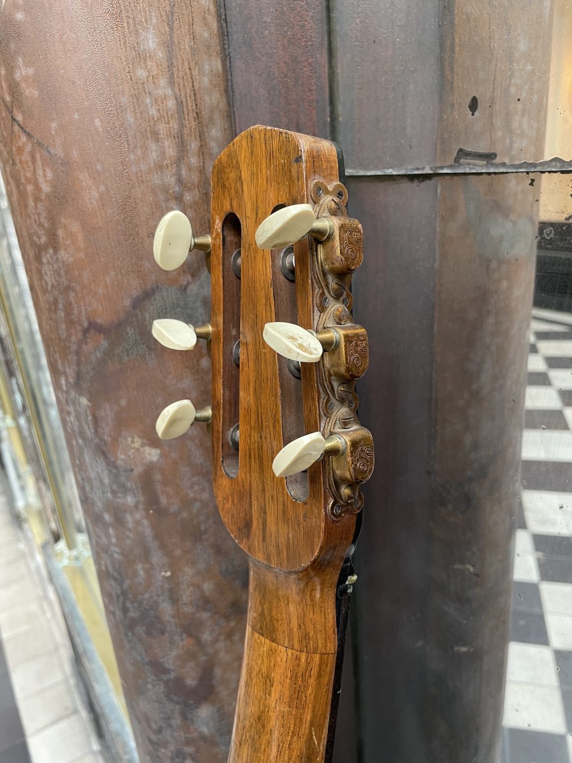 This instrument presents a beautiful patina, and has its tuners stamped with the characteristic “S”. 14-fret neck, fretboard is not original. Complete professional setup done at our workshop, in perfect playing condition.