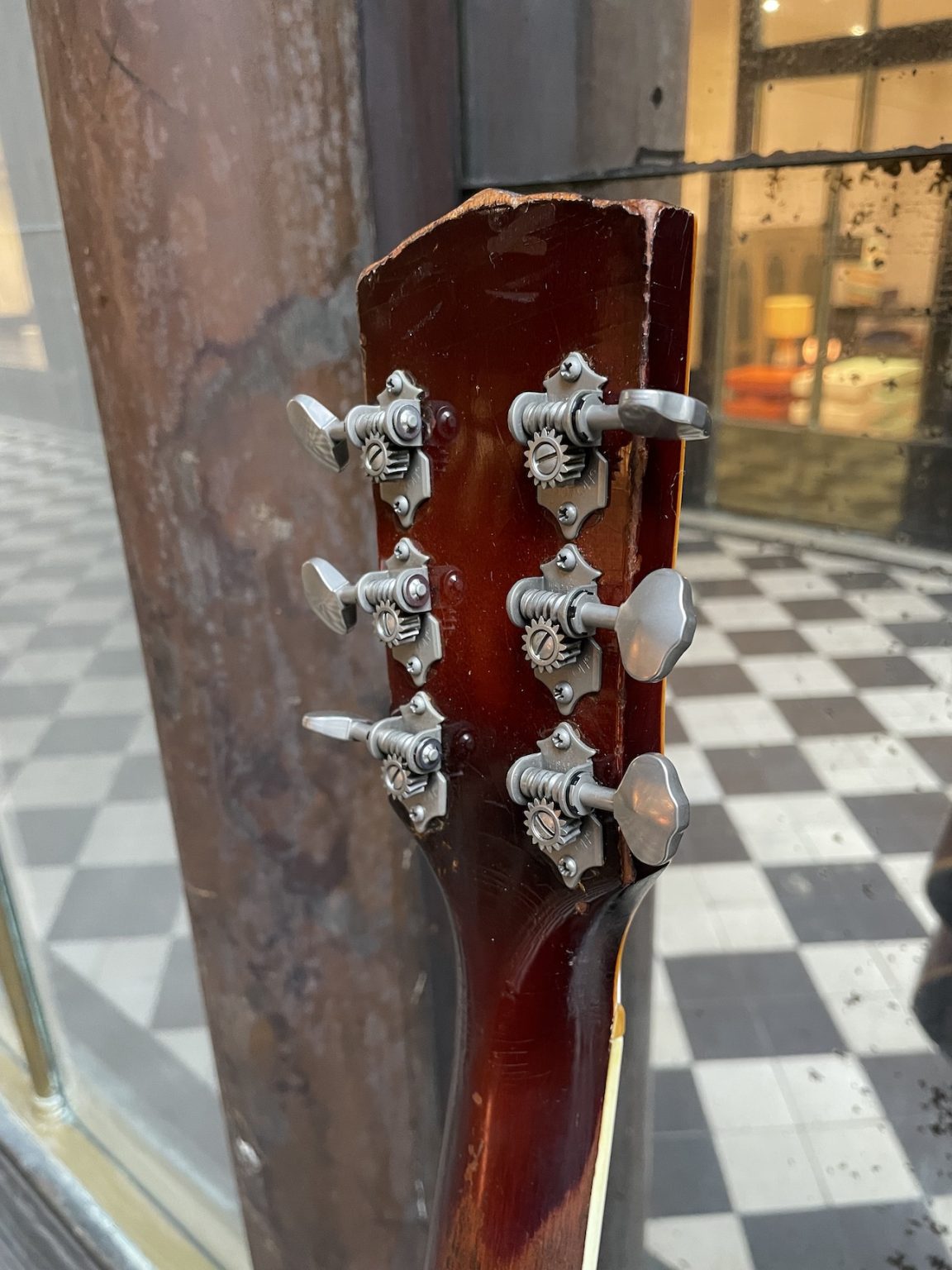 Pour couronner le tout, cette guitare est équipée d’un micro flottant DeArmond FHC qui reproduit à merveille la tonalité chaleureuse de l’instrument acoustique. Réglé et préparé par nos soins, en parfait état de jeu.