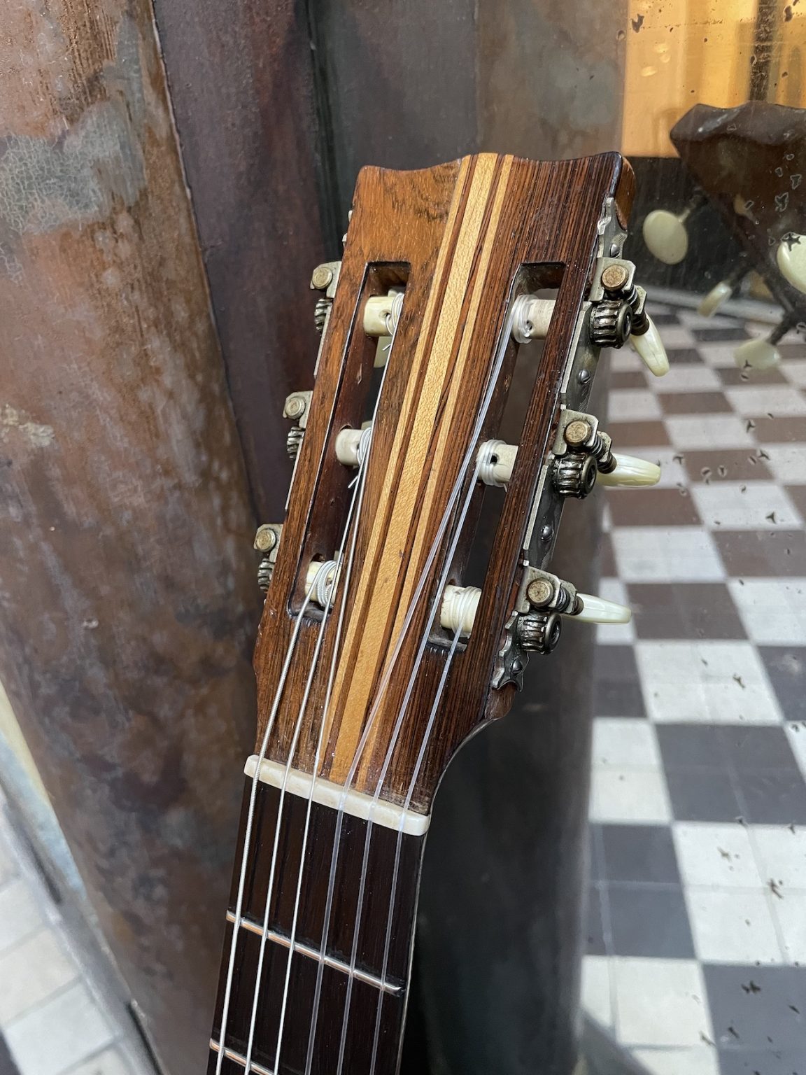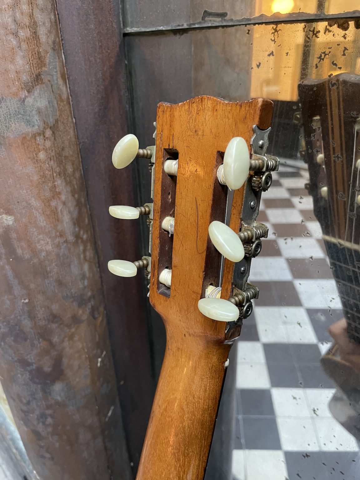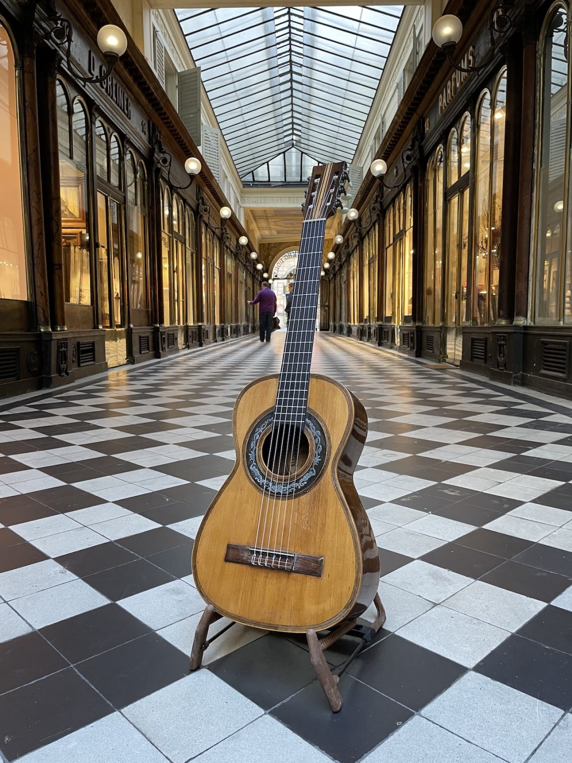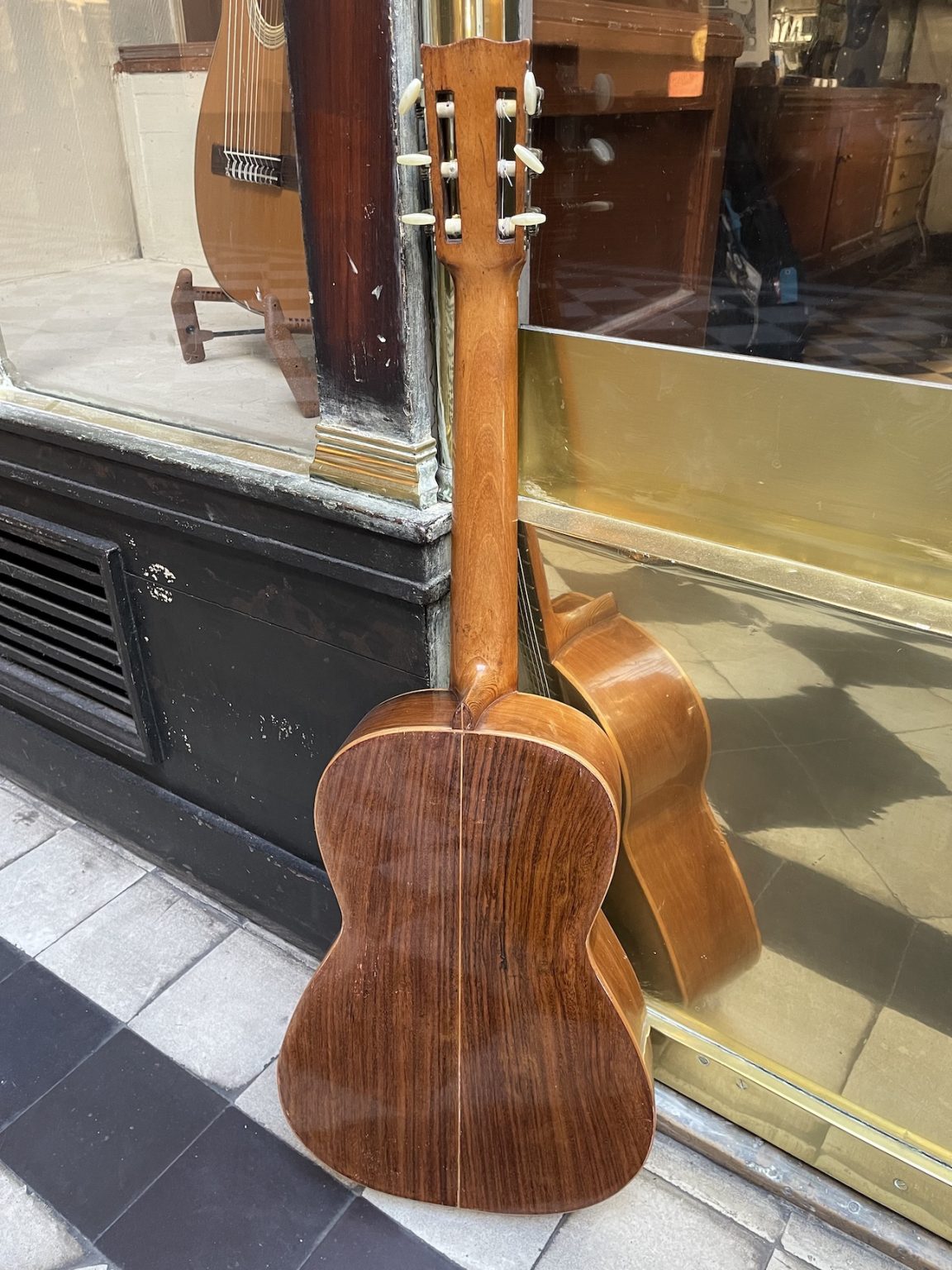 Malgré sa petite taille, cet instrument offre une belle projection sonore qui, alliée au diapason court de 600 millimètres, en rend le jeu particulièrement plaisant. Une guitare de belle facture, avec la table en épicéa et le fond et les éclisses en palissandre. Elle présente une finition plutôt élaborée avec un binding à plusieurs bandes autour de la table, ainsi qu’une rosace décorée de cercles concentriques et d’un motif d’ébène et de métal marquetés.