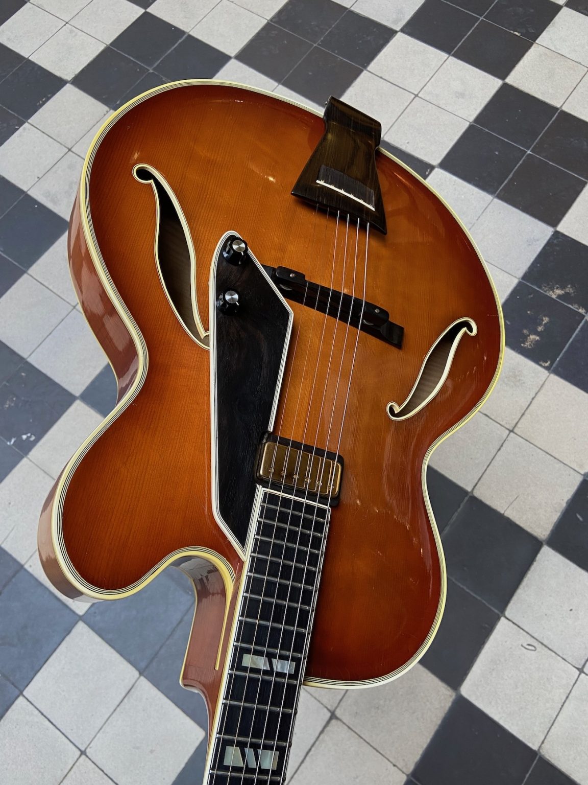 A beautiful New Yorker Special 17 Inch archtop guitar, built by Jimmy d’Aquisto in 1976.