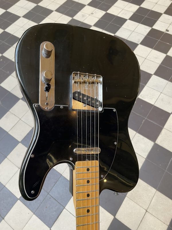 Voici un bel exemplaire parfaitement typique de la fin des années 70 / début des années 80. On retrouve une finition poly noire fréquemment appliquée dans la période, assortie à un pickguard noir pour un look monochrome. Manche en érable, deux micros simple bobinage d’origine, pour un poids (léger pour la période) de 3,5kg ! Préparée et réglée pour le jeu dans notre atelier – frettes planifiées, sillet de tête retravaillé pour une action et une intonation parfaitement ajustées.
