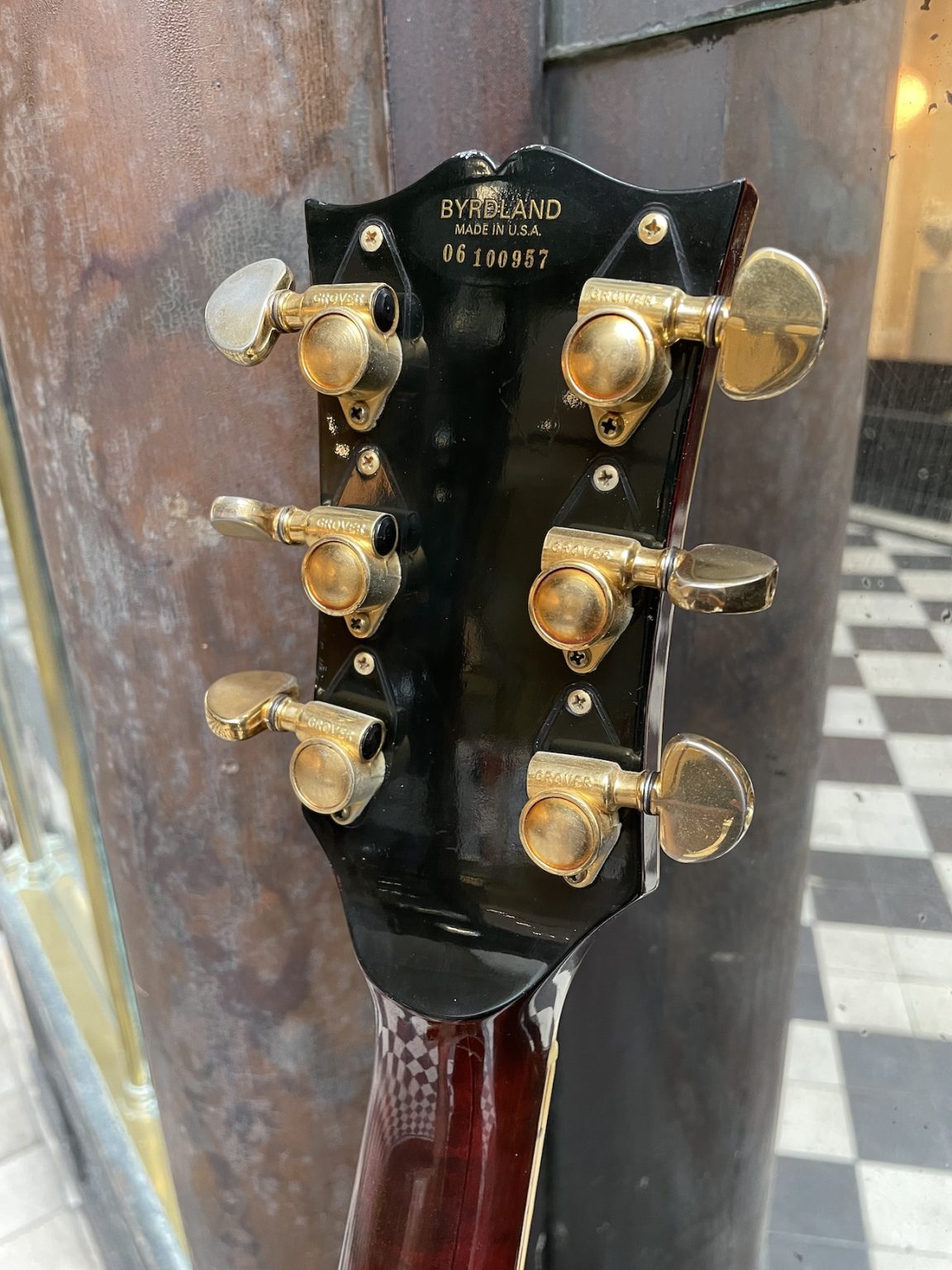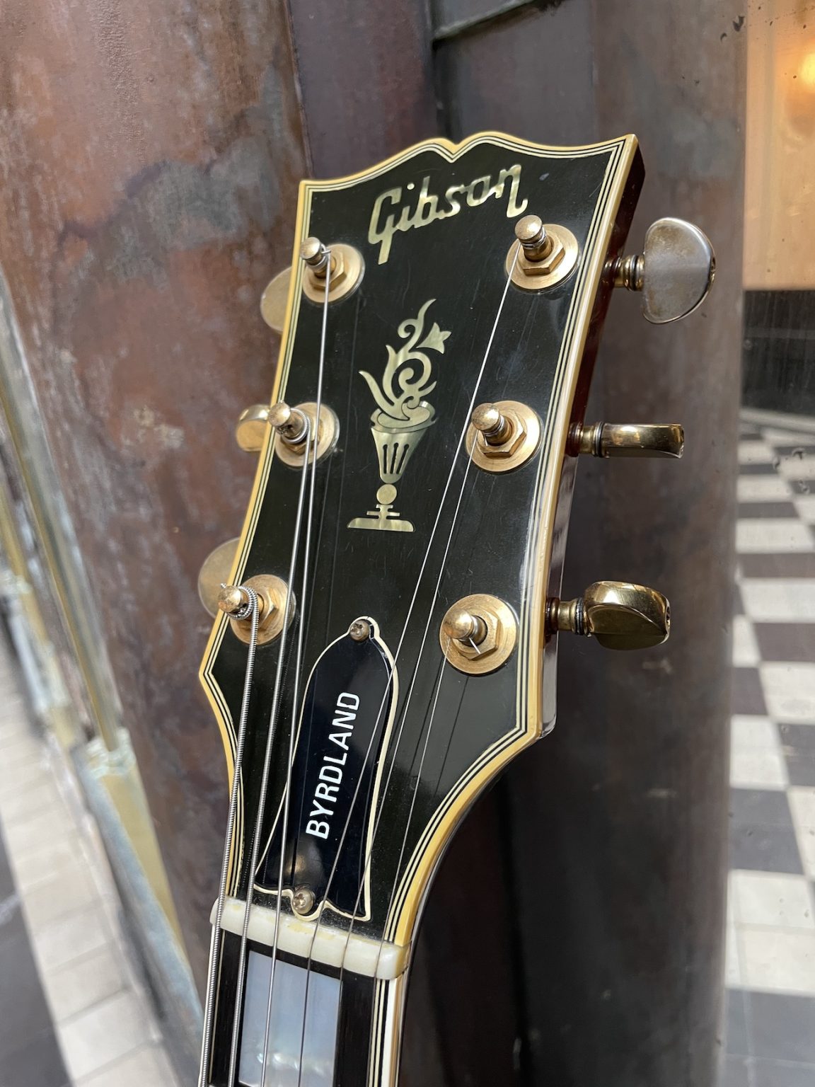 Modèle haut de gamme paru en 1955, la Byrdland est le fruit des désirs de deux éminents joueurs de session de l’époque, Billy Byrd et Hank Garland – le nom du modèle résulte d’ailleurs de l’amalgame de leur deux patronymes. Basée sur les dimensions de la L-5 avec une longueur de diapason réduite (23,5 pouces au lieu du typique 24,75), la Byrdland est par ailleurs la première thinline archtop produite par Gibson, et sort du lot de par son raffinement : touche en ébène avec de larges incrustations rectangulaires en nacre, accastillage plaqué or avec un joli cordier figuré, et une insolite incrustation en nacre “Flowerpot” sous le logo Gibson sur la tête…