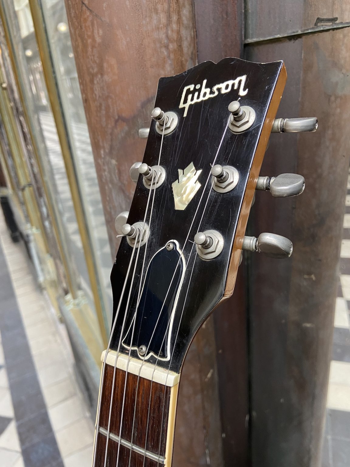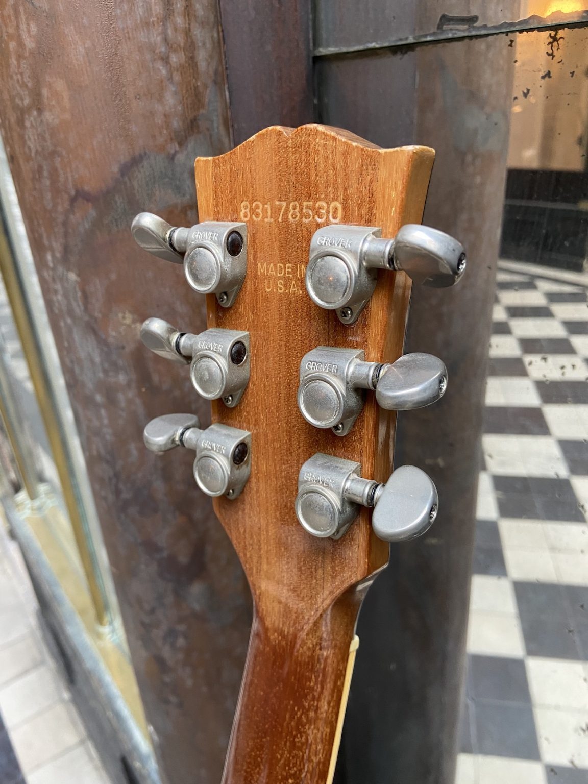 The body is made for a stunning bit of laminated maple with great figuration which the Natural finish really brings out. Single piece mahogany neck with “Dot” style inlays, Tuno-O-Matic bridge.