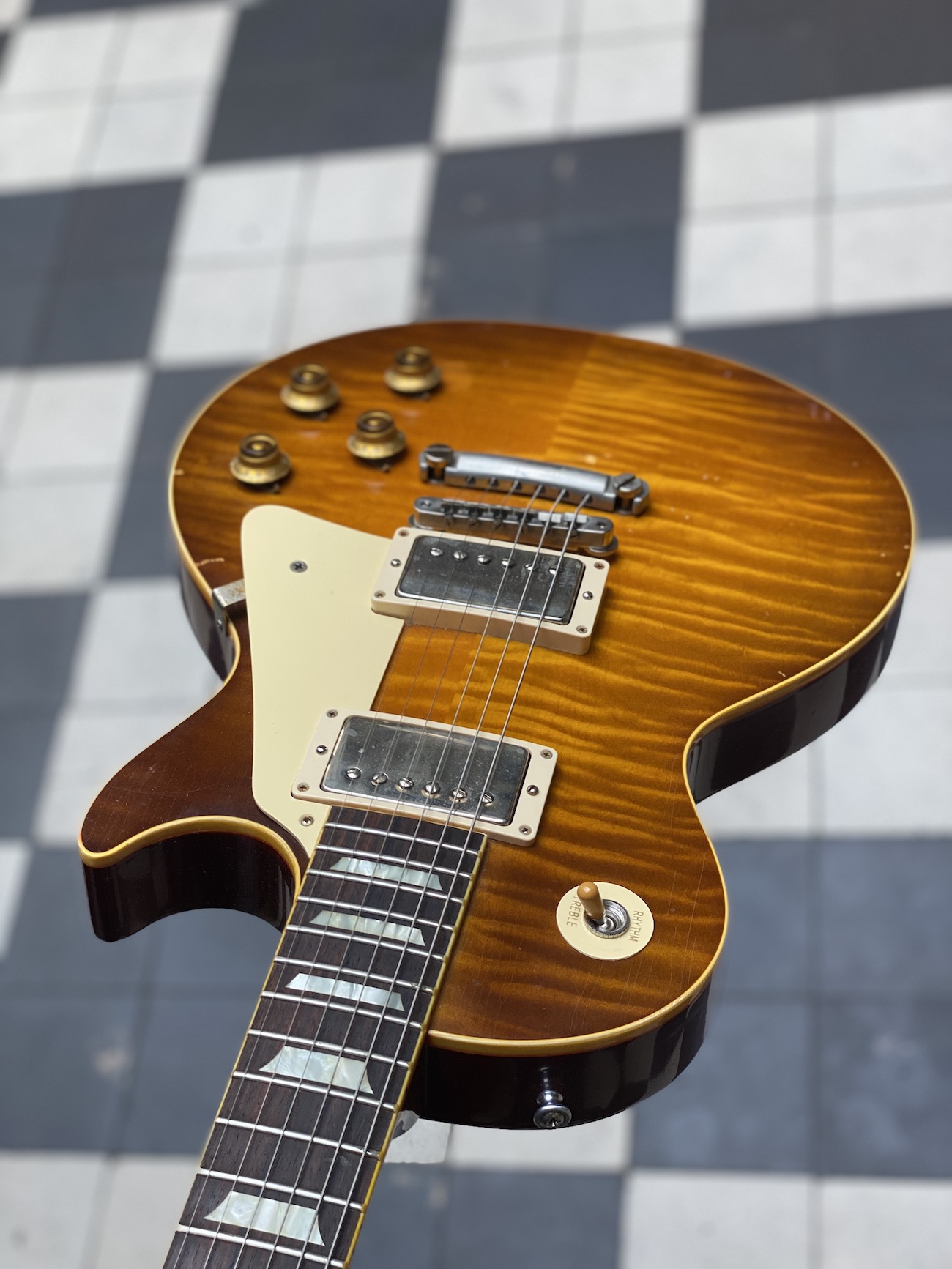 Superbe Les Paul ’59 de la série Collector’s Choice en finition Dirty Lemon Burst.