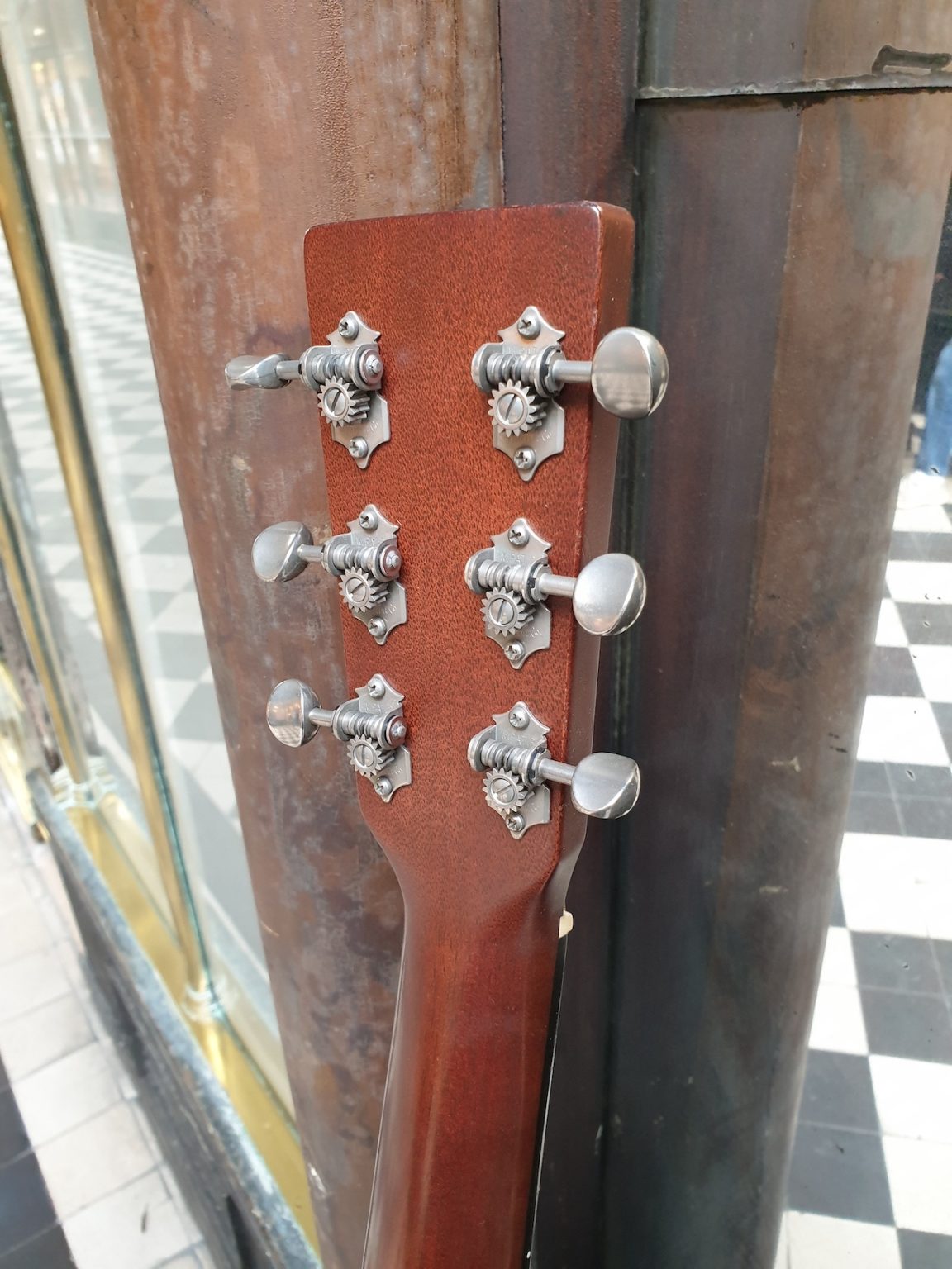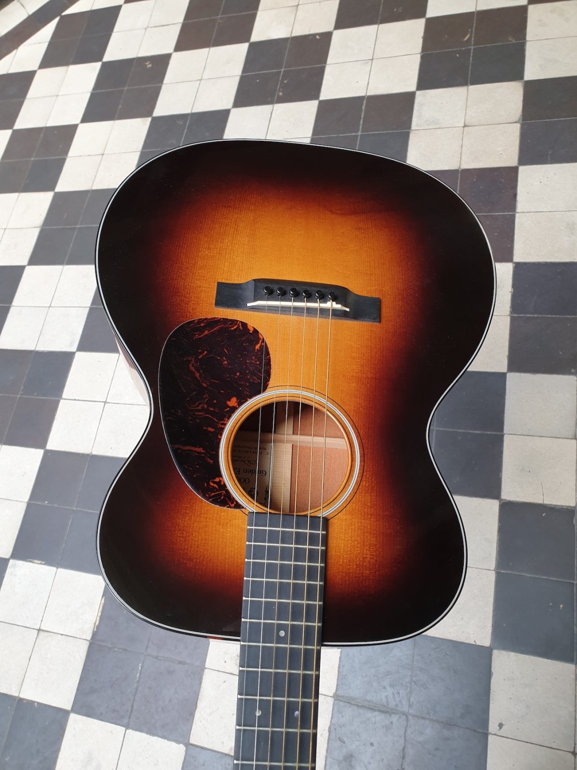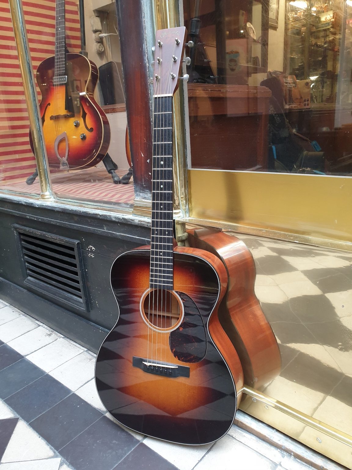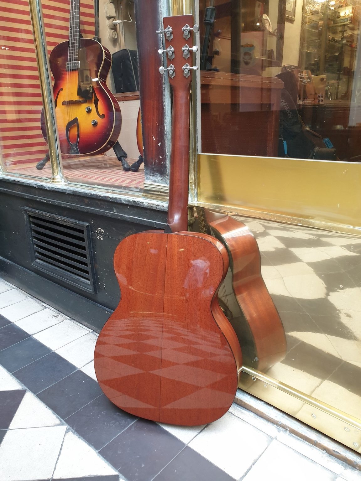 Cette guitare est en parfait état de jeu, avec une belle finition Sunburst dans le style des finition dites shade top que l’on retrouve sur de nombreuses flat-top Martin des années 30, équipée d’un micro Fishman. Réglée et préparée par nos soins.