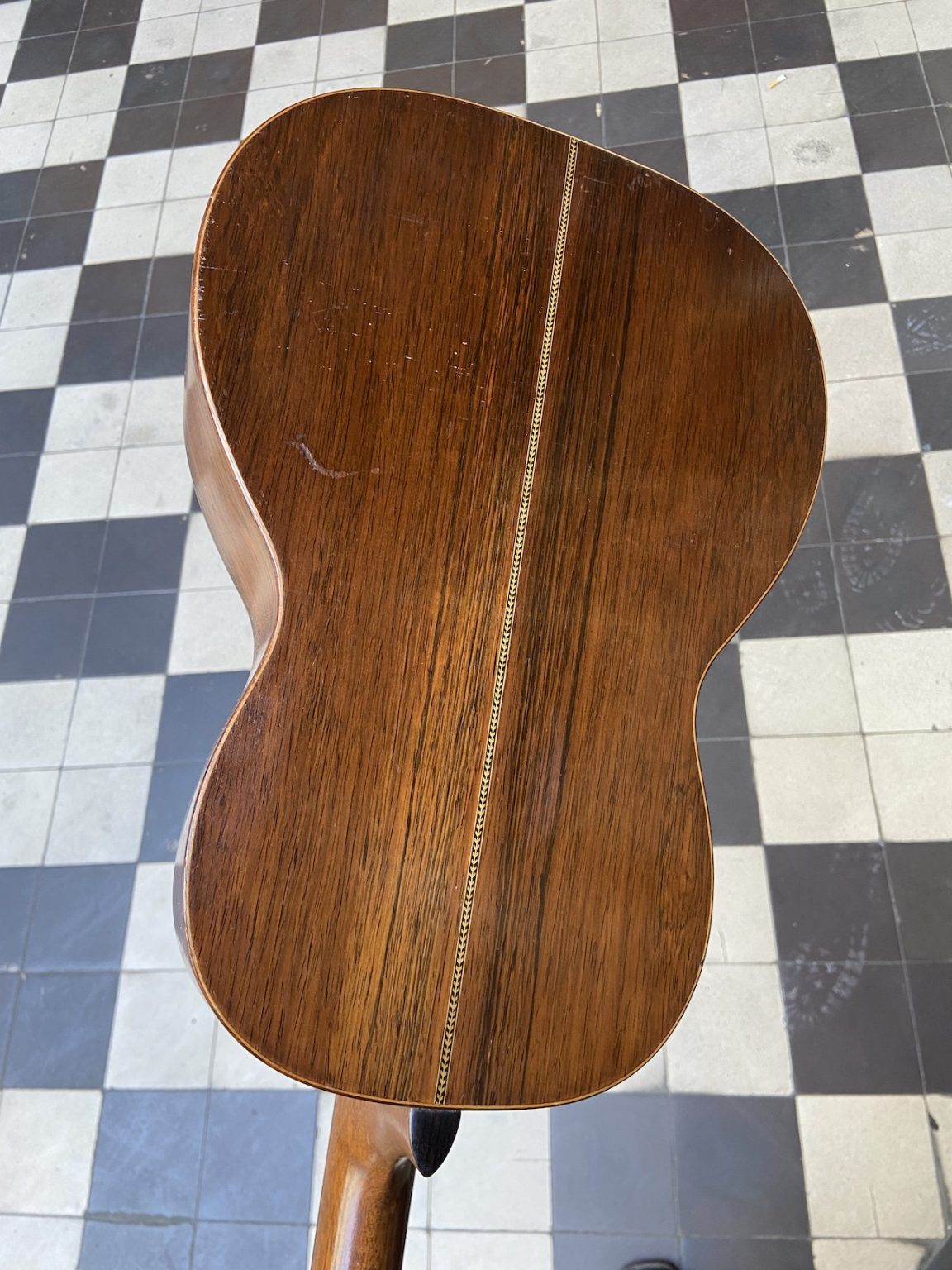 This small-sized model, offered in style 21 – the most affordable rosewood style offered by Martin at the time -, came in at a time where the demand for tenor guitars was going through the roof. By the mid 1920s, many tenor banjo players had turned to the softer tone of the guitar, and the tenor guitar allowed them to get just this without having to learn a new playing technique or tuning. The 5-21T model offers all of the characteristics found on other style 21 instruments: spruce top, rosewood sides and back, with a herringbone design around the sound hole and the across the backstrip.