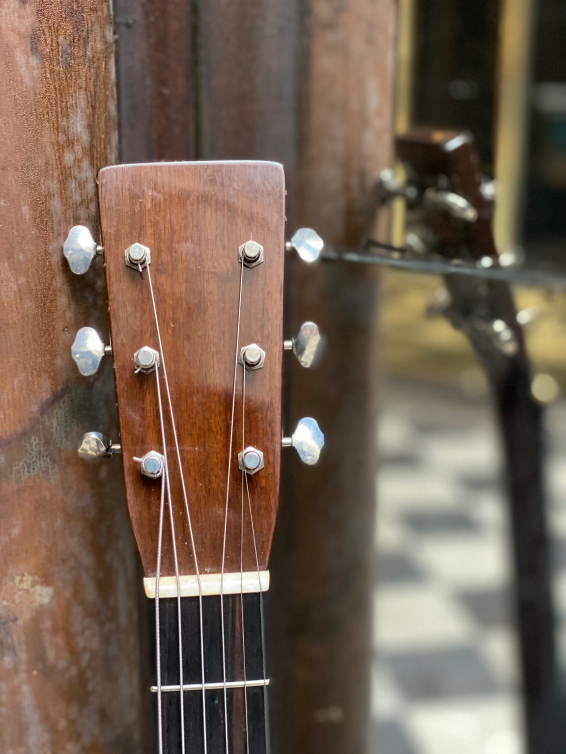 L’interprétation de la dreadnought par Pre-War, belle table en Adirondack torréfié. Finition patinée “Distress” grade “Road Warrior.